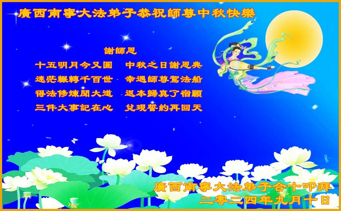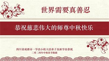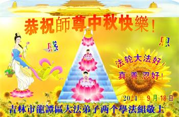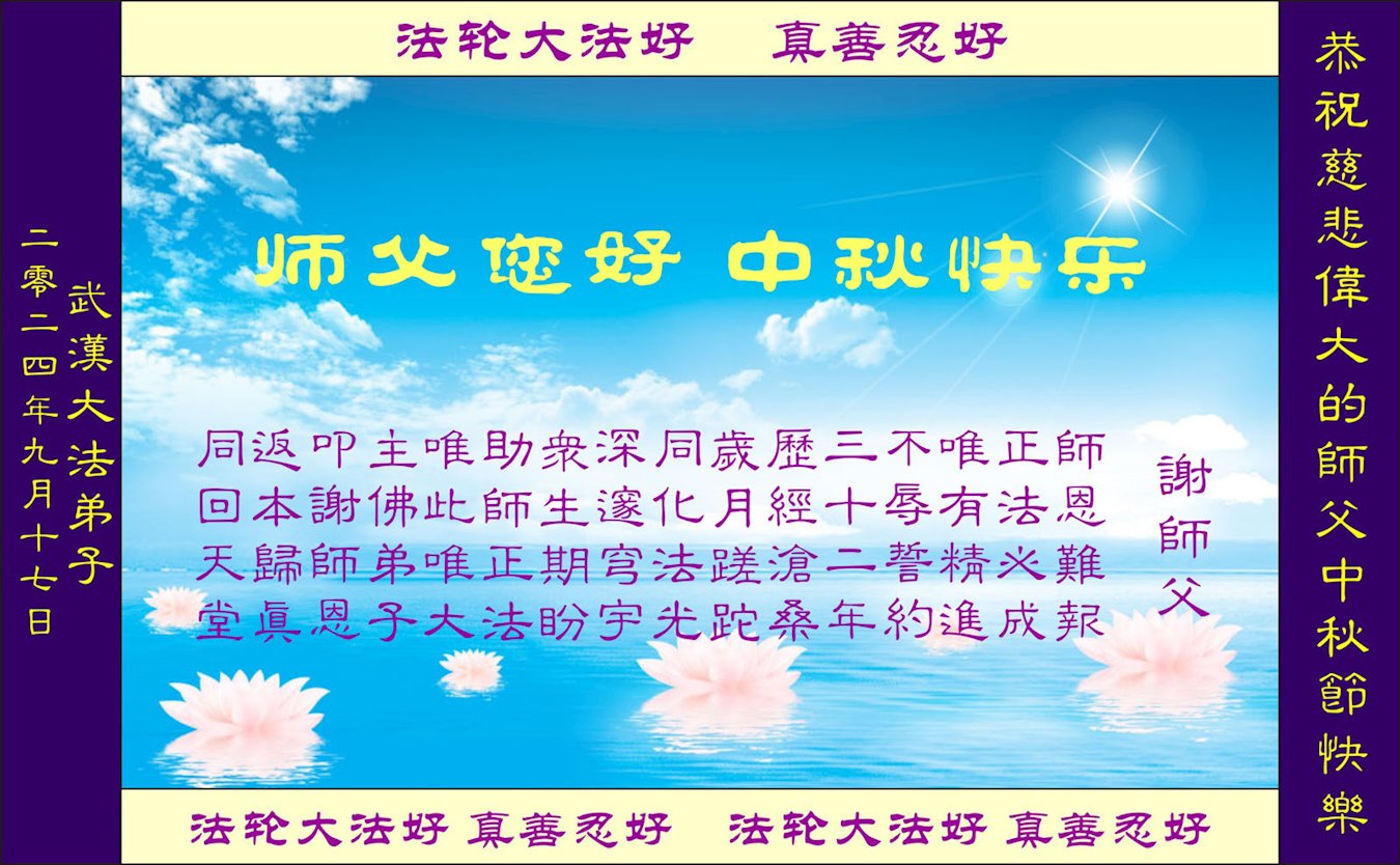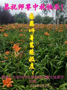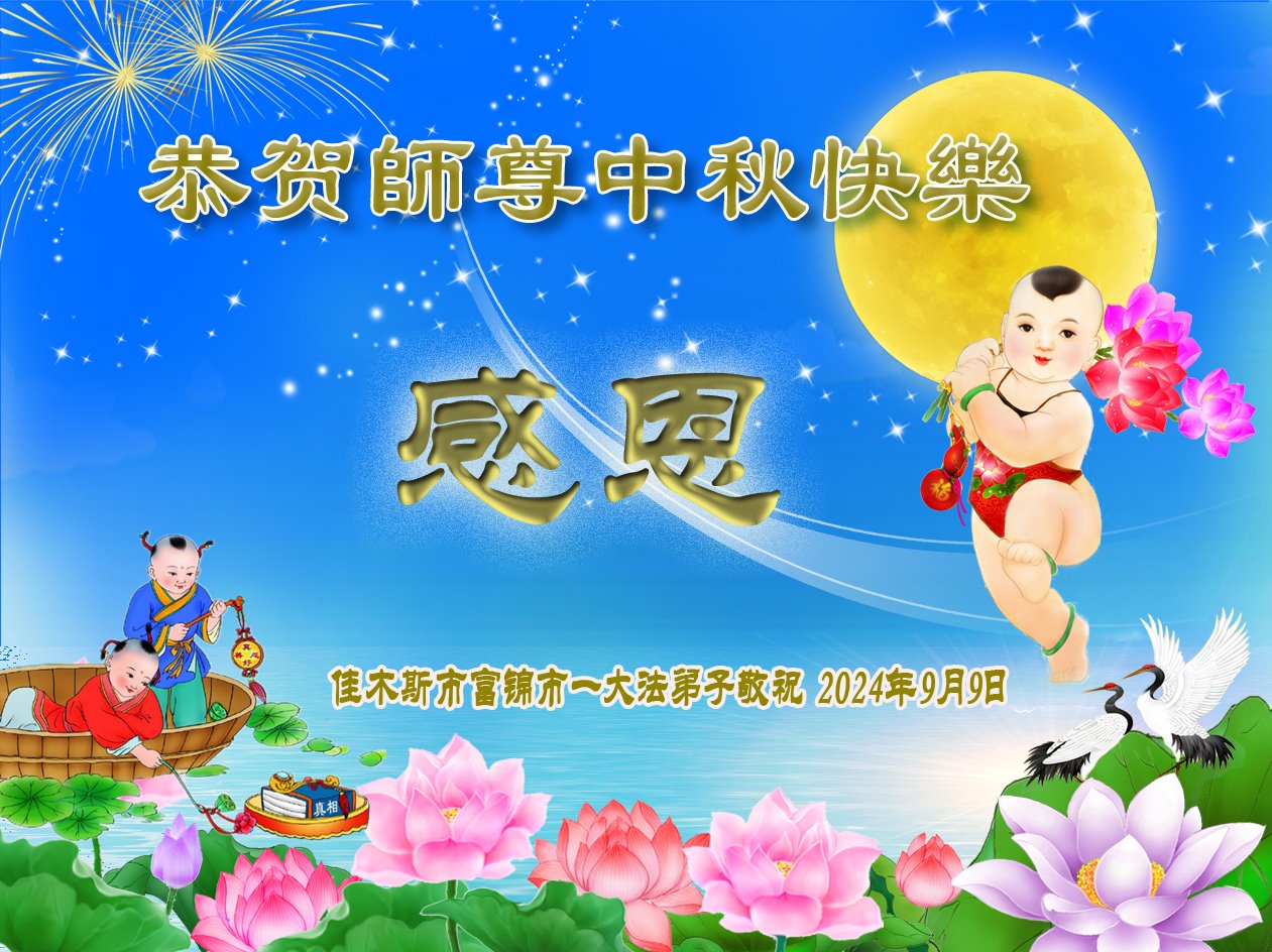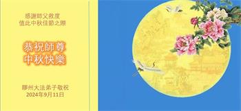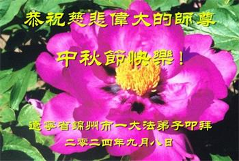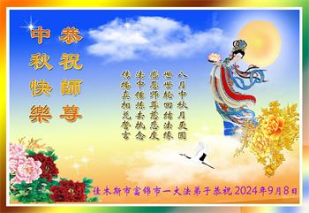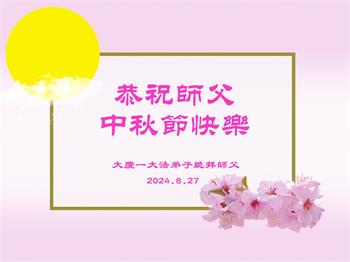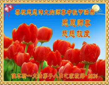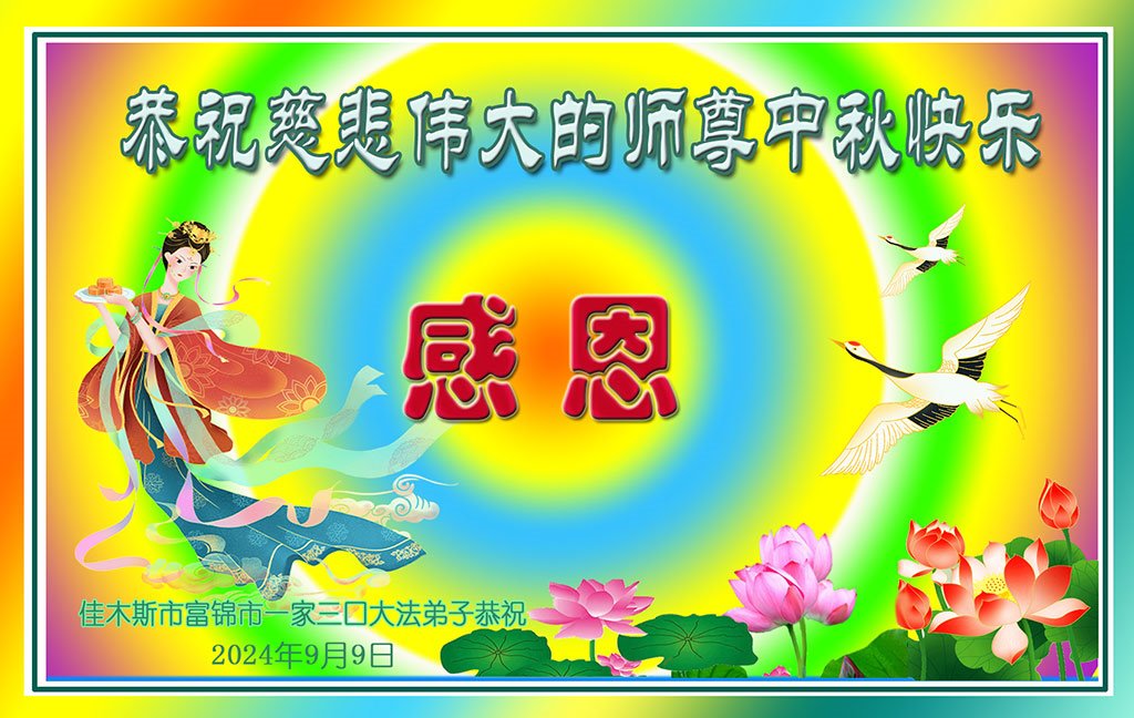 【明慧网二零二四年九月十六日】(明慧网通讯员综合报道)中秋佳节来临之际,在中国大陆公安、检察院、司法、法院及军队系统任职的大法弟子们遥寄贺词,感谢慈悲伟大的师尊的救度之恩,恭祝慈悲伟大的师父中秋节好!
