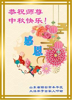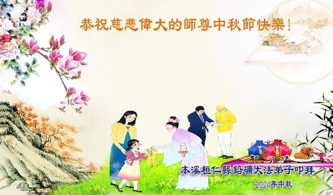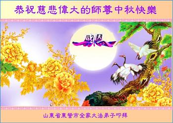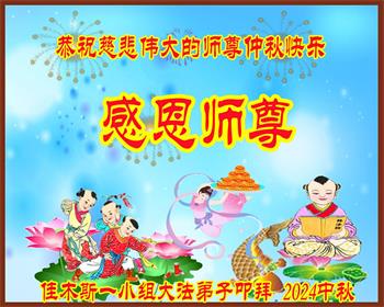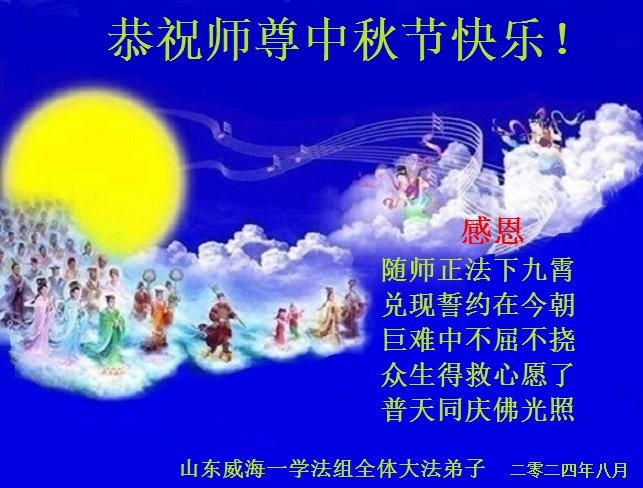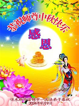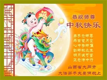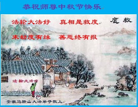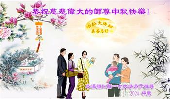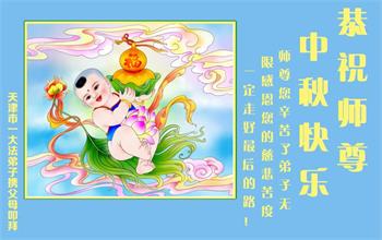 李大师中秋好!您为了众生能得救,给世人以希望,操碎了心,耗尽了所有,您辛苦了!我们过去在中共恶党的谎言蒙蔽下做过对不起您的事情,感谢您对我们过错的宽恕谅解,让我们的同事在明白真相后诚念“真善忍好,法轮大法好”九字真言,躲过了致命劫难。