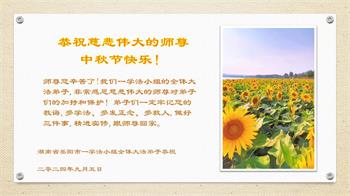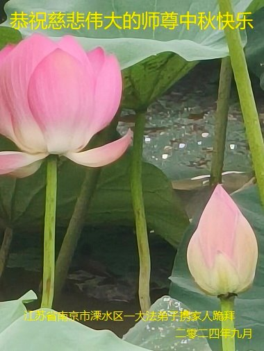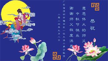 慈悲伟大的师父:我们在您的慈悲看护下来到人间,我们是您的小弟子,我们经常听您的讲法录音,我们非常想念您。中秋节到了,我们大法小弟子恭祝慈悲伟大的师父中秋节快乐!叩谢师恩!