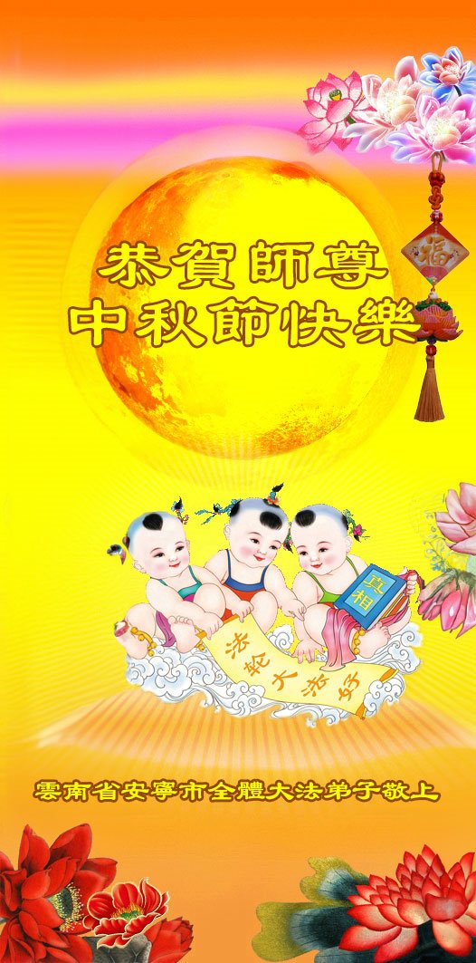 中国大陆大法小弟子们恭祝慈悲伟大的师父中秋节快乐!