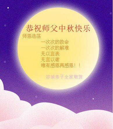 恭祝师父中秋节快乐!小弟子想念师父,叩拜师尊。