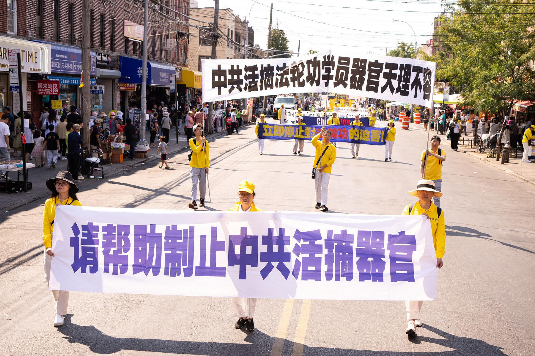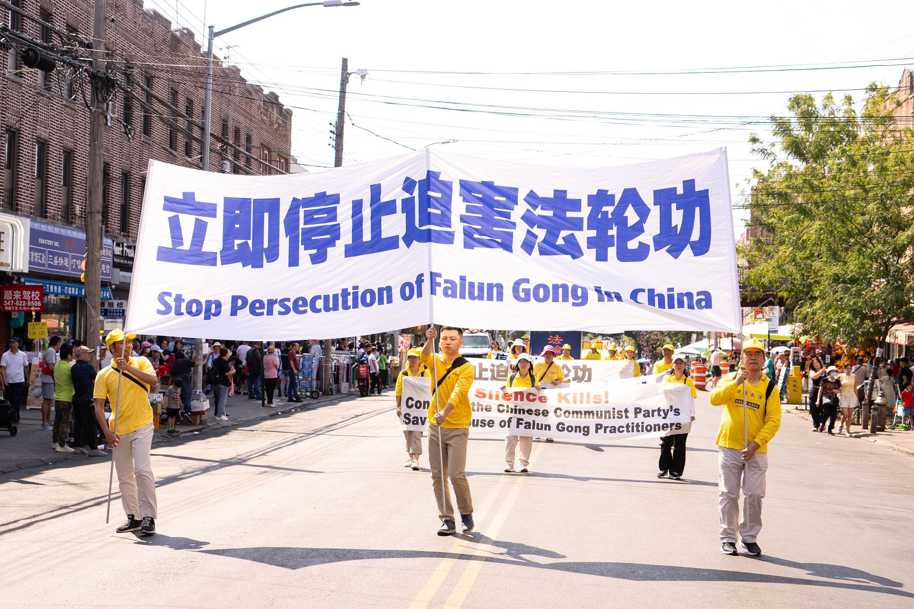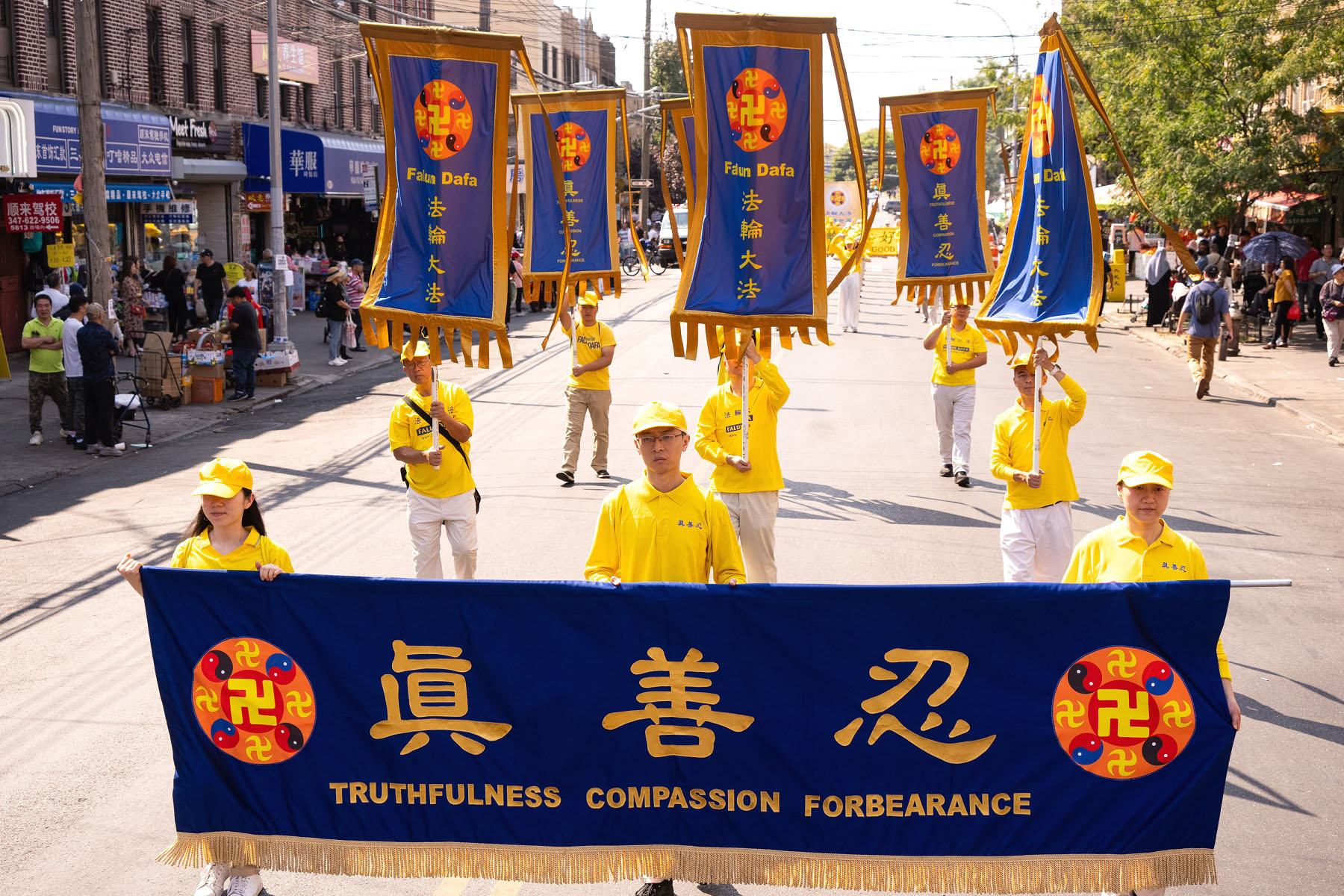 ![]() 图9~15:二零二四年九月十四日,中秋佳节到来之际,法轮功学员在纽约第三大华人社区——布鲁克林八大道举行盛大游行,图为第二方阵“停止迫害法轮功”。 |