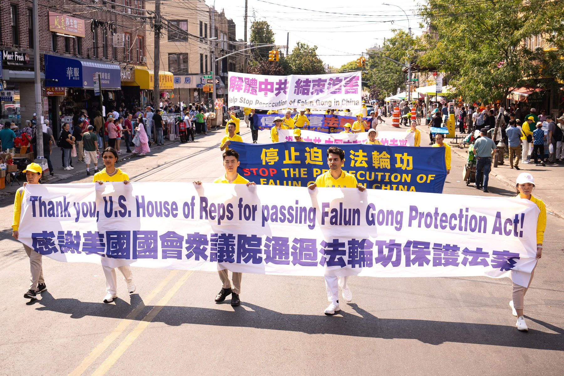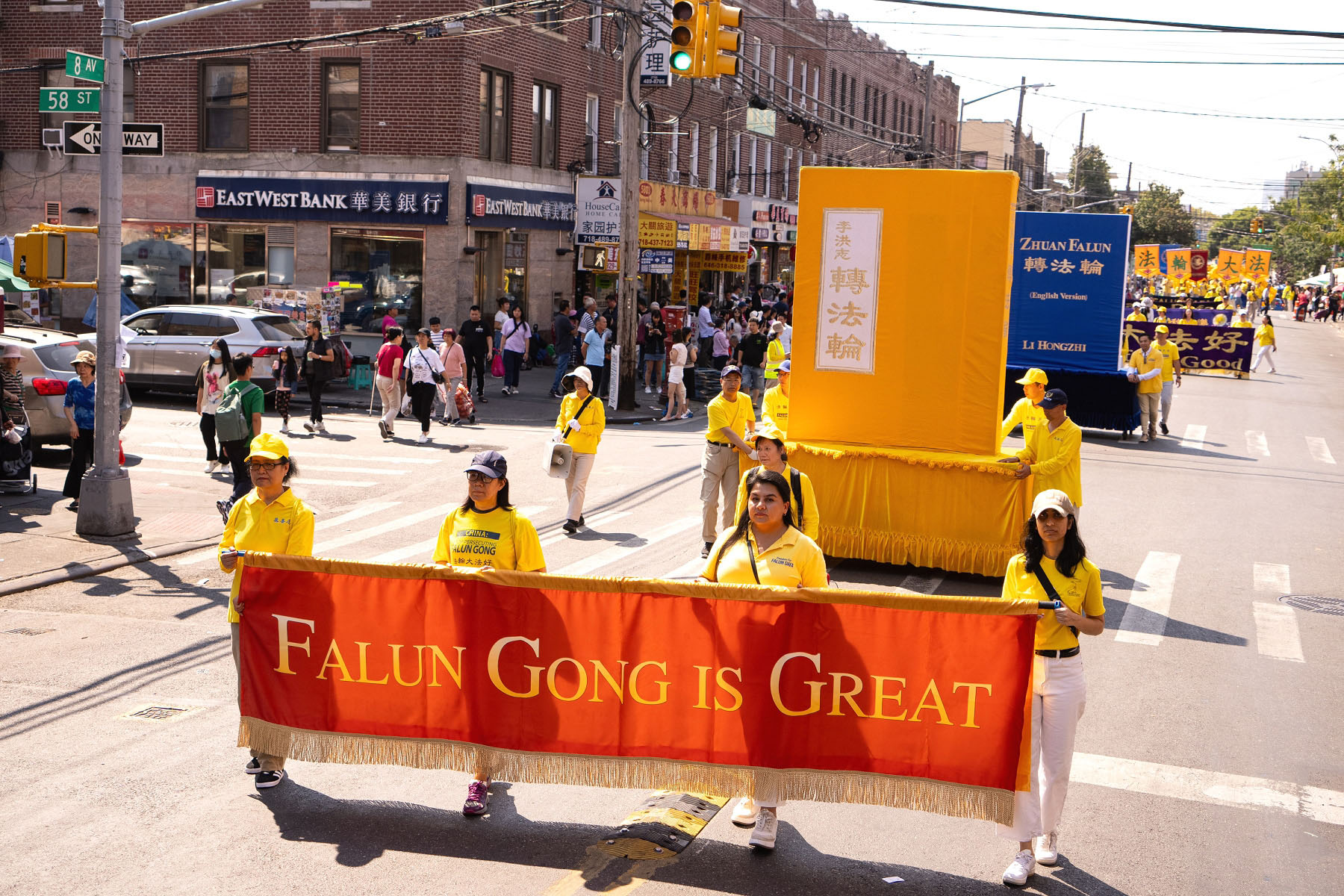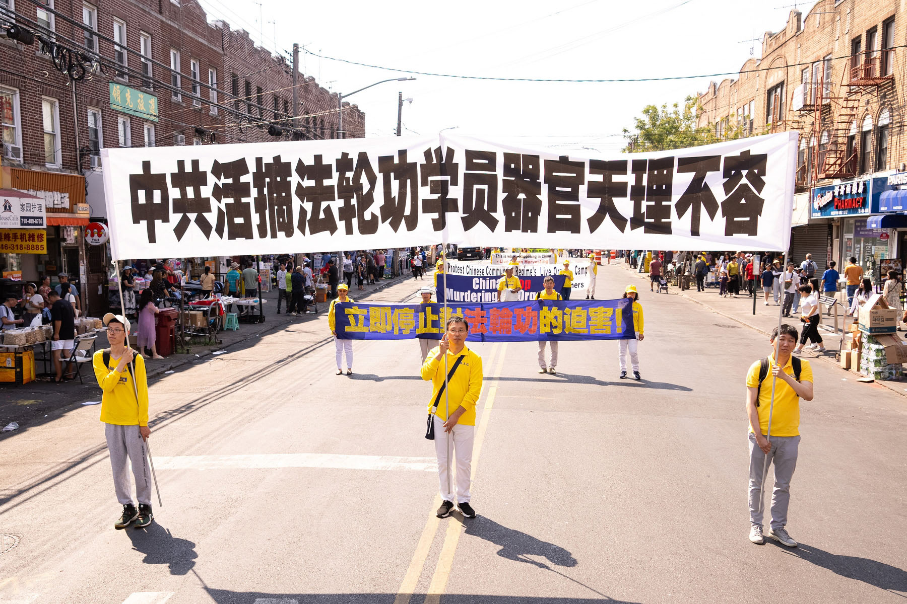 ![]() 图9~15:二零二四年九月十四日,中秋佳节到来之际,法轮功学员在纽约第三大华人社区——布鲁克林八大道举行盛大游行,图为第二方阵“停止迫害法轮功”。 |