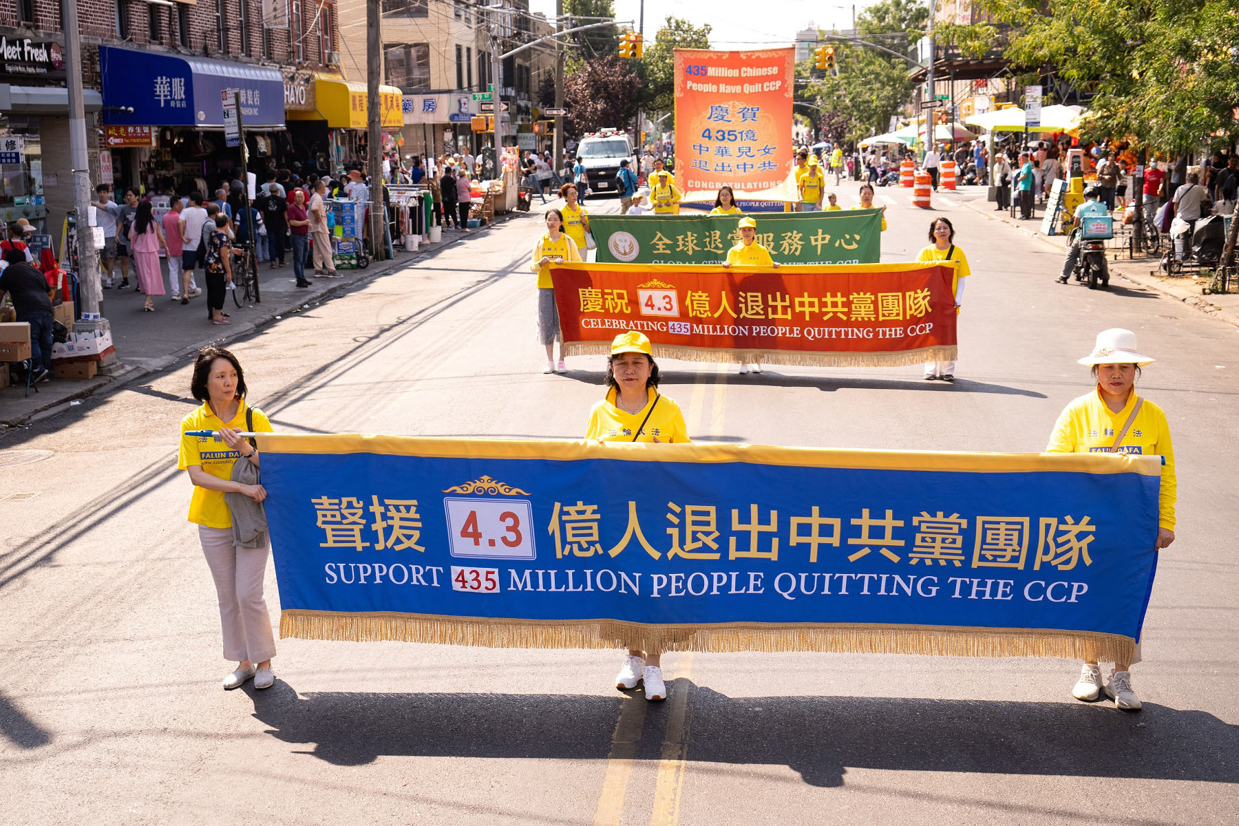 ![]() 图16~22:零二四年九月十四日,中秋佳节到来之际,法轮功学员在纽约第三大华人社区---布鲁克林八大道举行盛大游行,图为第三方阵“声援4.3亿中国人退出中共党团队”。 |