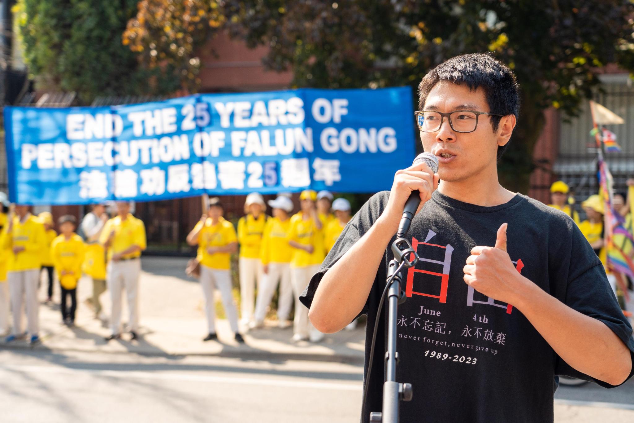 他还呼吁各界放弃向中共妥协和苟同,并坚决站在自由民主的一边。在演讲最后,张昕伟表示:“今天我和所有法轮功学员站在一起,就是为了实现我们共同的自由民主的目标。”