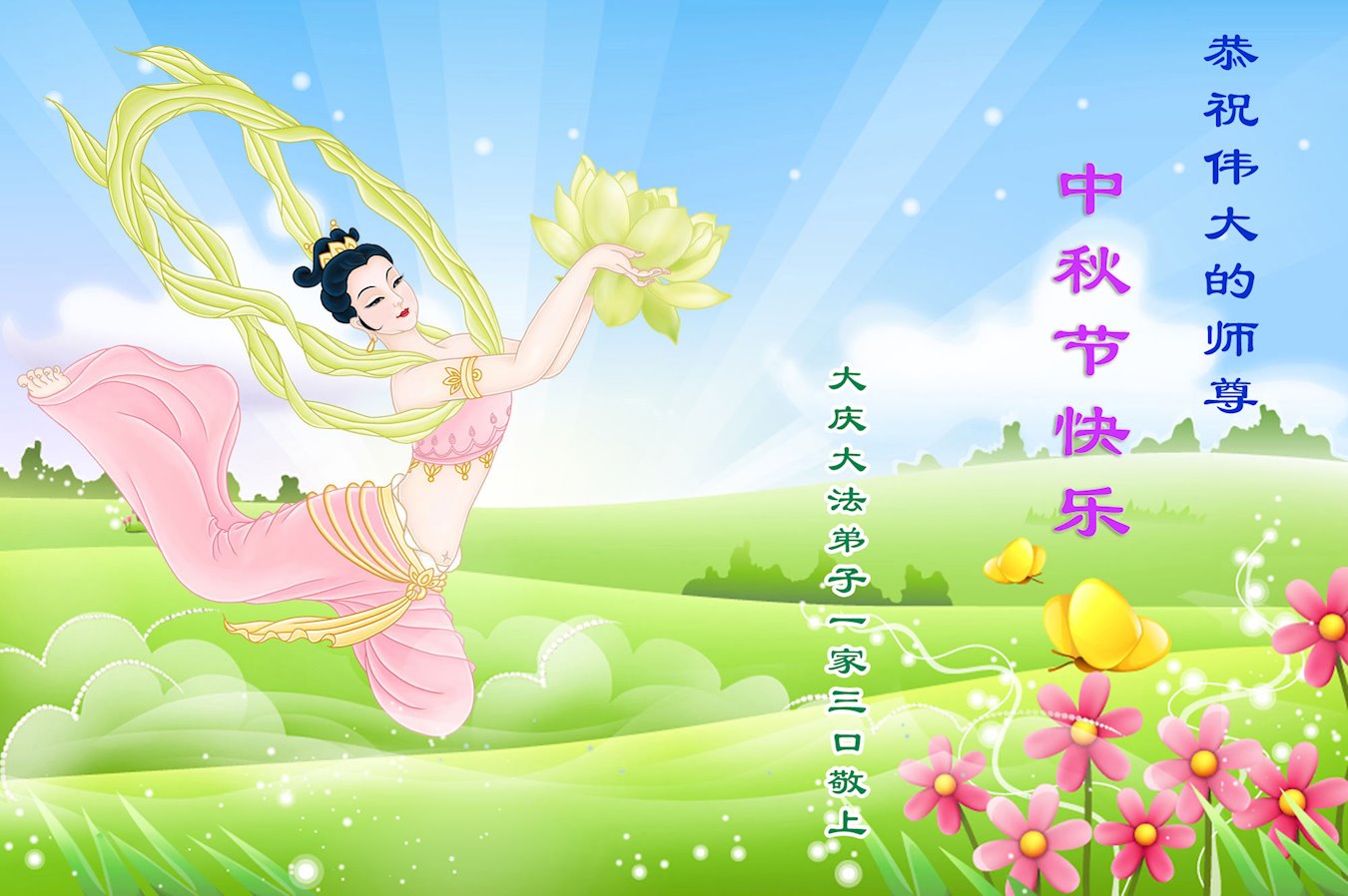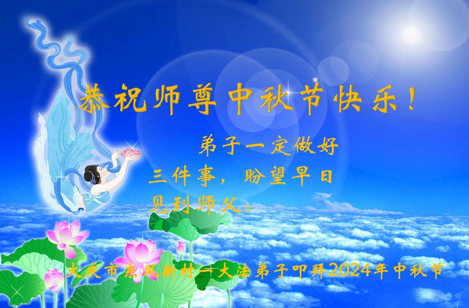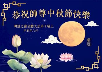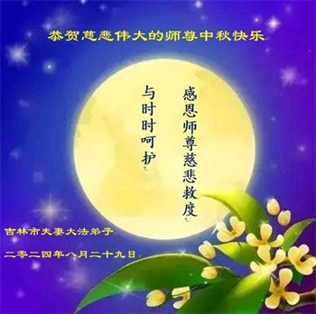 祝您中秋节快乐!感谢您无条件的恩典、慈悲和怜悯。感谢您给我所有的机会,总是引导我回来,在我误入歧途或迷失方向时从未抛弃我。感谢您让我有幸成为一名大法修炼者。感谢您为我们承受了这么多。