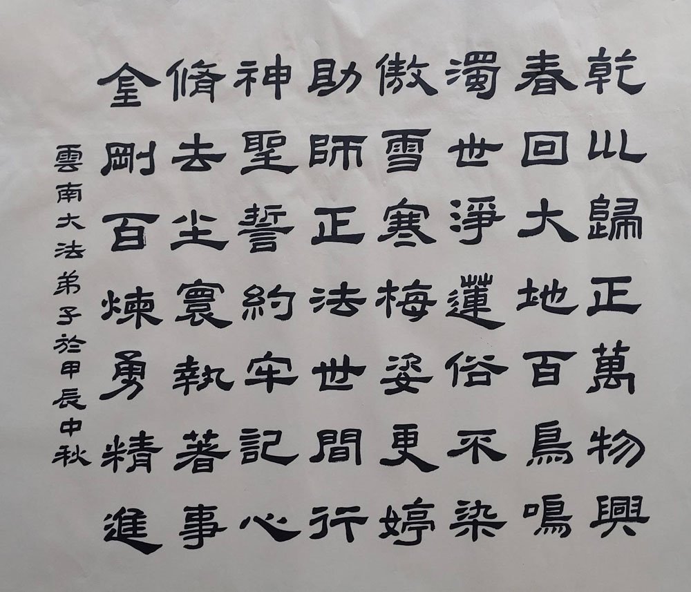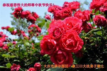 感谢师尊慈悲苦度!我发誓要放弃一切执着,救度更多的人,做合格的大法弟子。愿师尊多一份欣慰,少一份操劳。