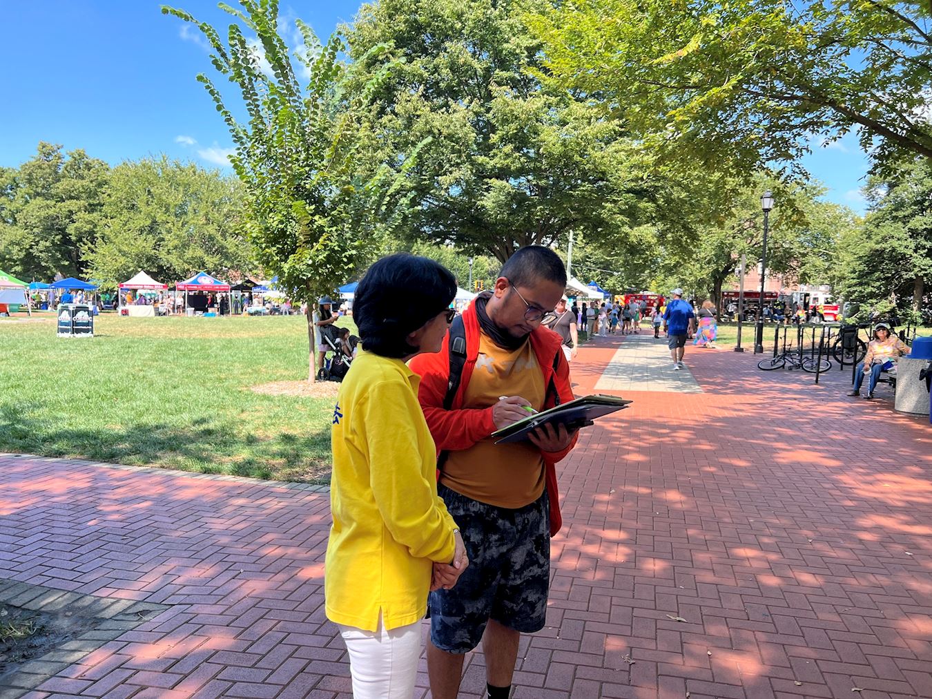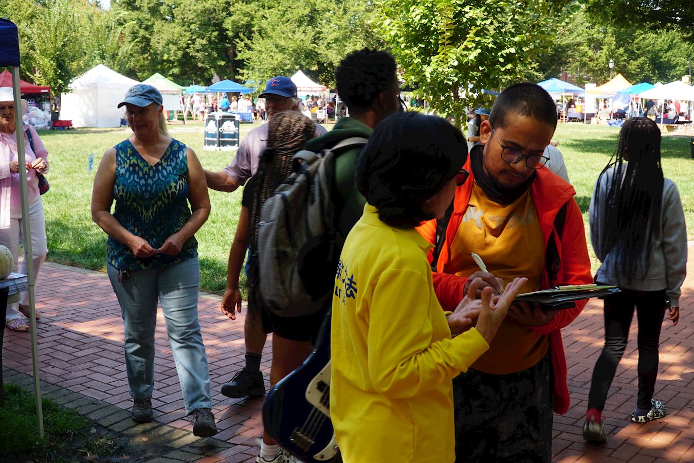 ![]() 图4~10:法轮功学员在特拉华州纽瓦克社区日活动中向民众讲真相,民众听闻后纷纷在反对活摘器官征签表上签名表示支持。 |