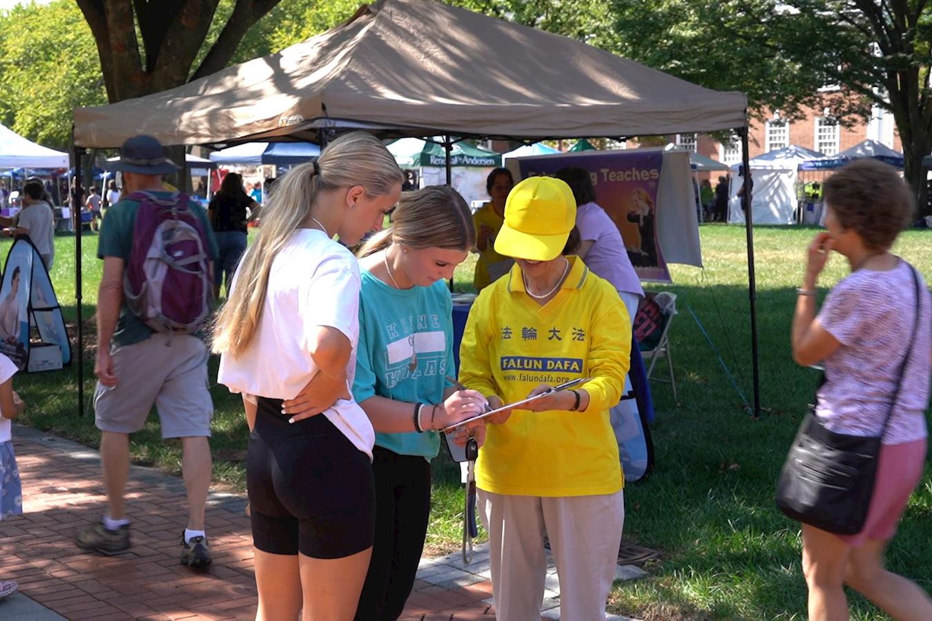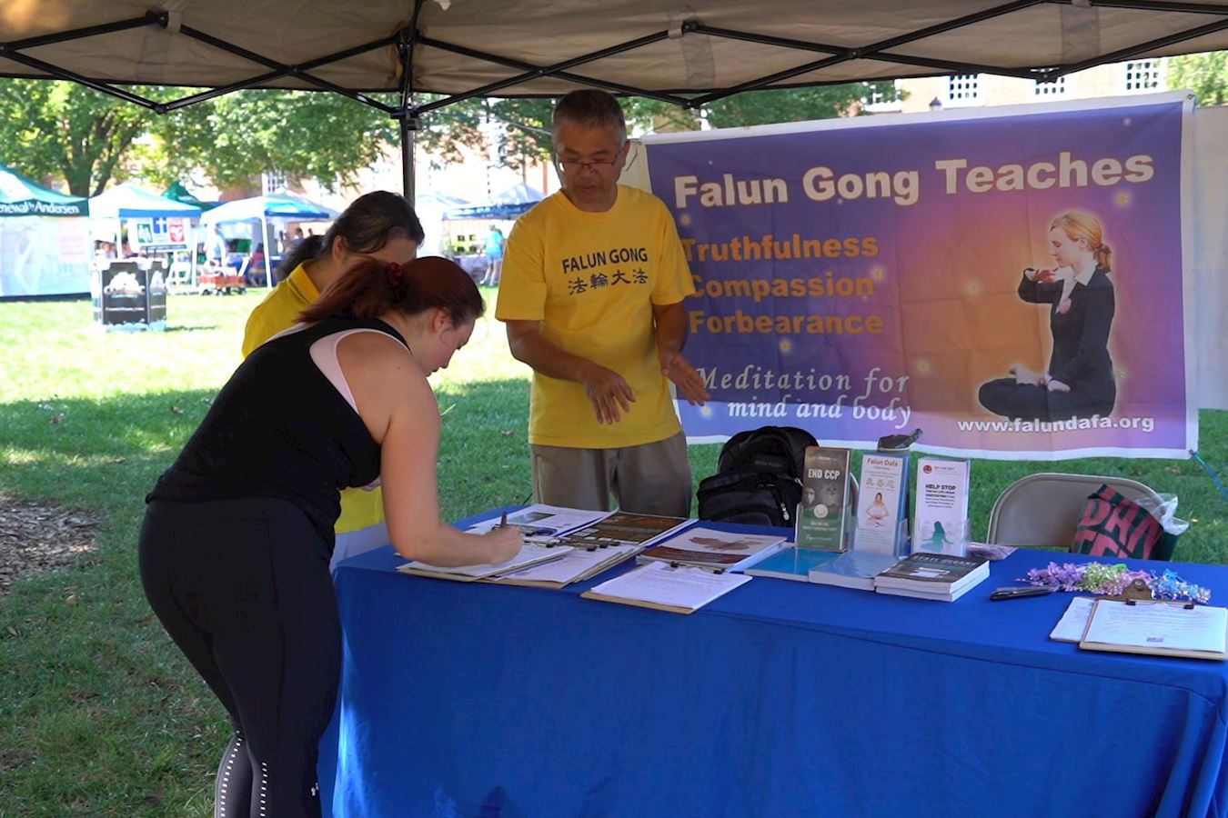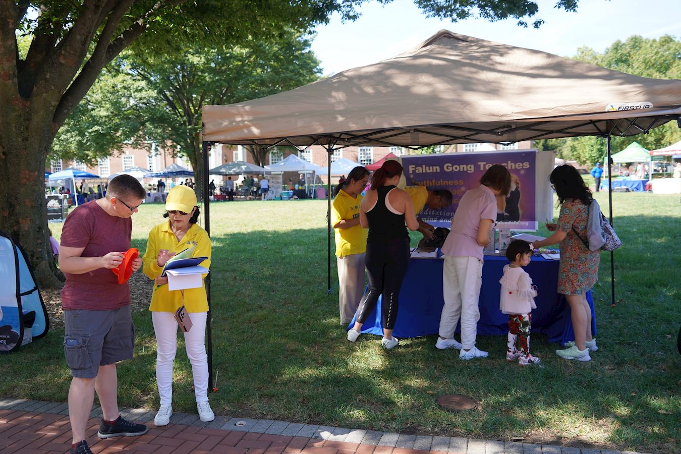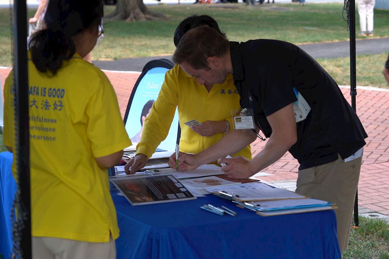 法轮功学员在社区日活动中设立了展位,并展示法轮功功法,向民众介绍法轮大法,吸引了很多游客驻足观看。法轮功学员还向民众讲述中共迫害法轮功、活摘法轮功学员器官的真相,许多民众在听闻真相后,人们纷纷签名支持敦促联邦参议院通过《法轮功保护法案》,制止中共活摘法轮功学员器官的罪行。并表示要告诉更多人了解真相。