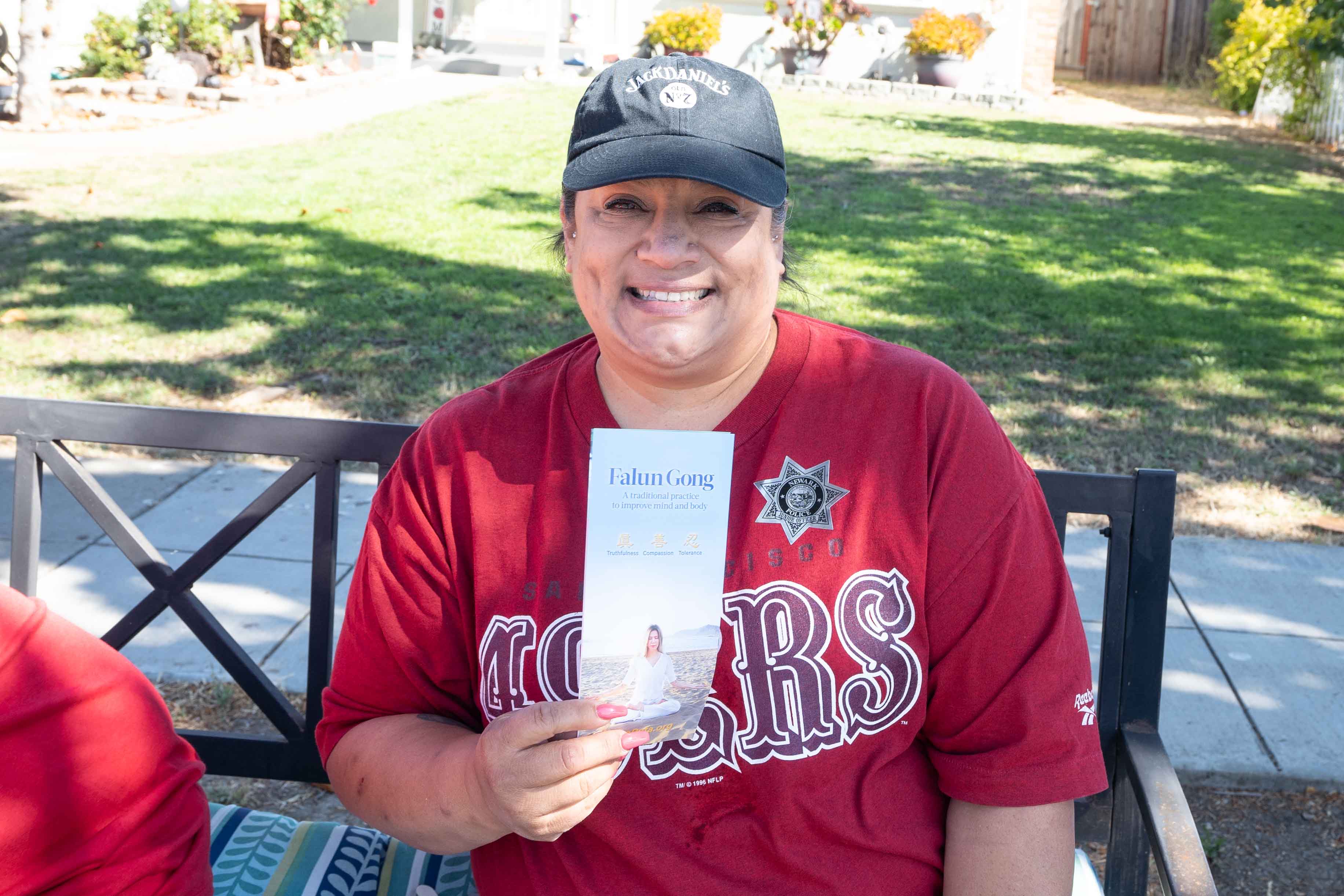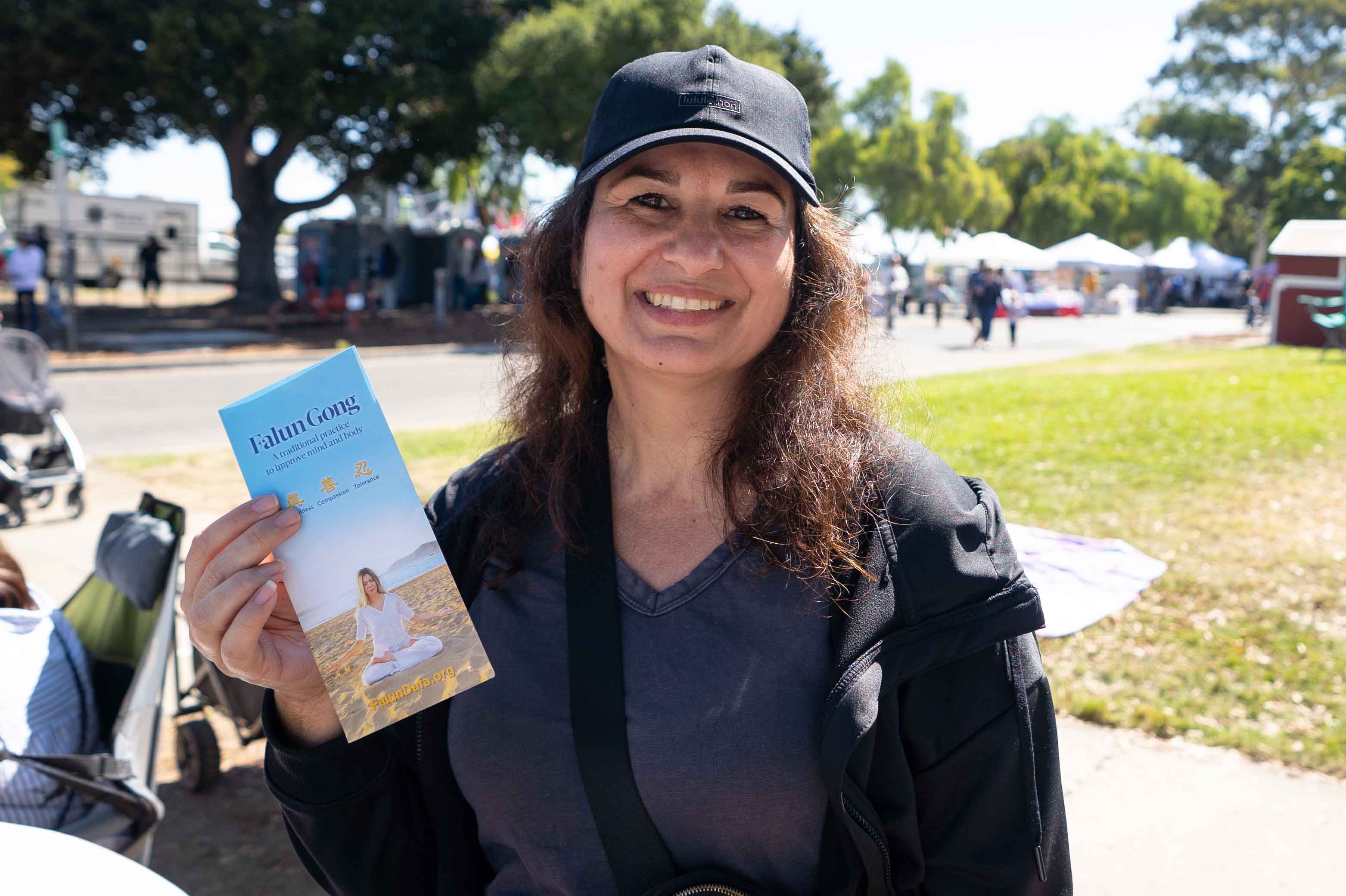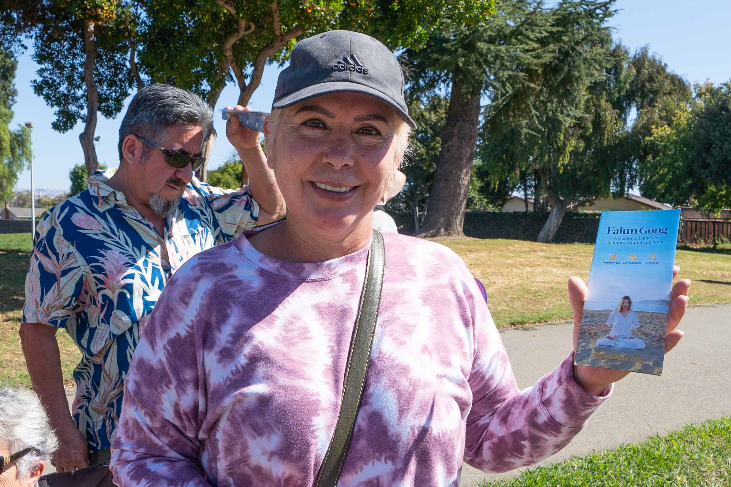 “还有炼功的功法”,她接着说,“我一直对他们(法轮功学员)充满敬意,我经常看到他们炼功,所以我们要照顾好自己的身体和精神内涵,太棒了。”