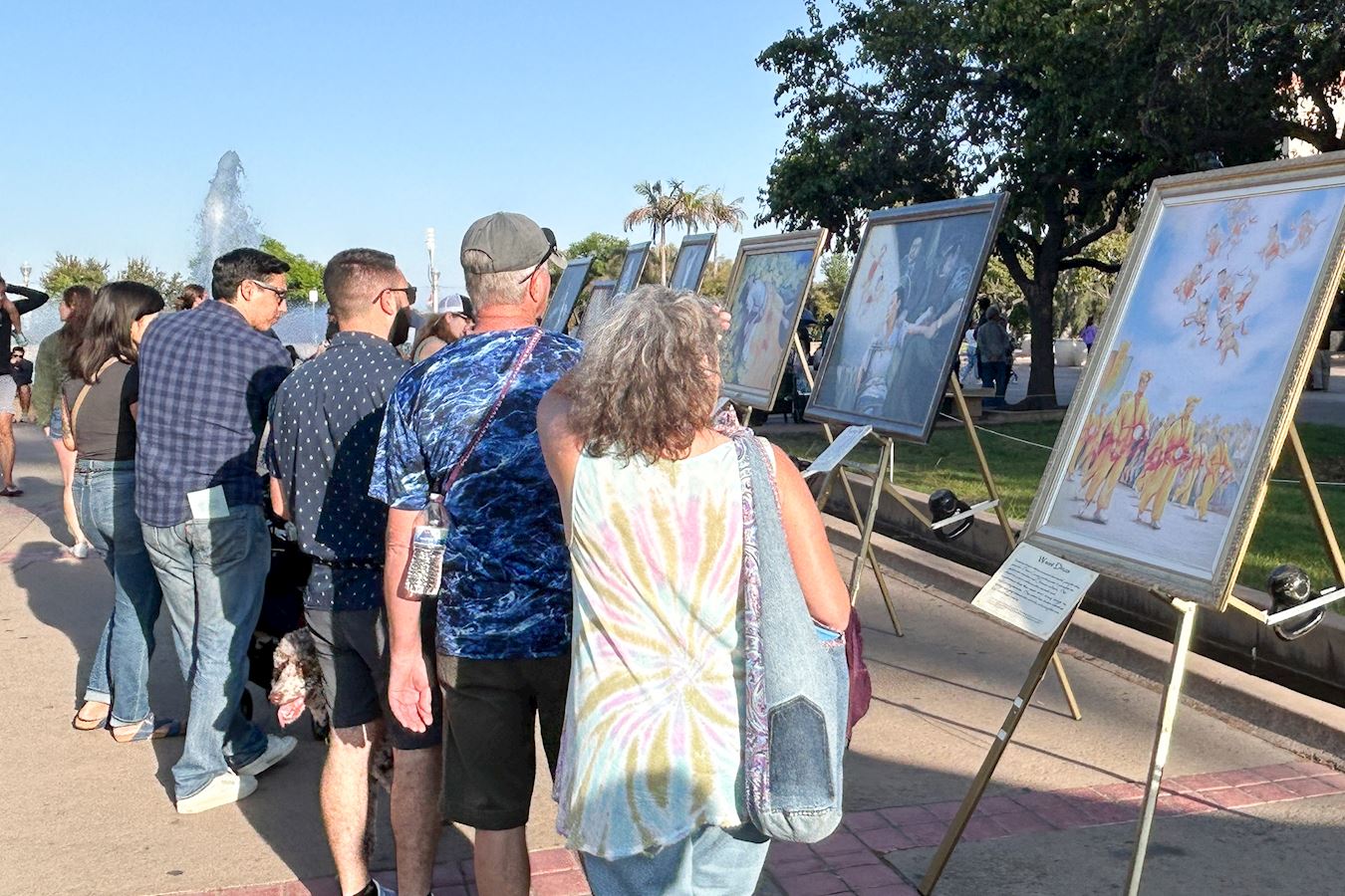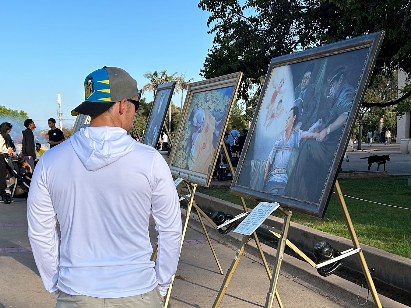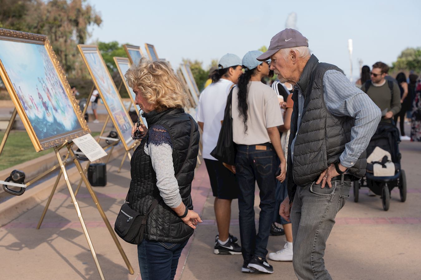 年轻护士查普曼(Chapman)和女友米丽(Millie)都是圣地亚哥本地人,当日他俩到公园散步,看到了画展。二人花了很多时间仔细看了多幅画作,并在支持《法轮功保护案》征签表上签了名。他们都说,画展让他们感到“深受启迪”。
