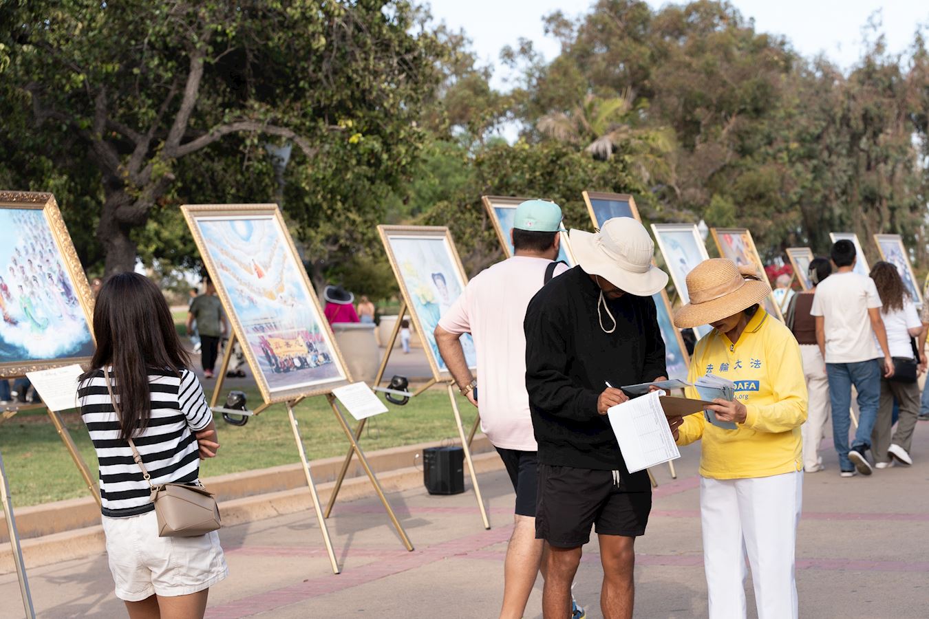 ![]() 图1:二零二四年九月二十一日,加州圣地亚哥法轮功学员在巴博亚公园(Balboa Park)举办“真善忍美展”,学员向参观者展示法轮功功法,传递法轮大法的美好。 |
