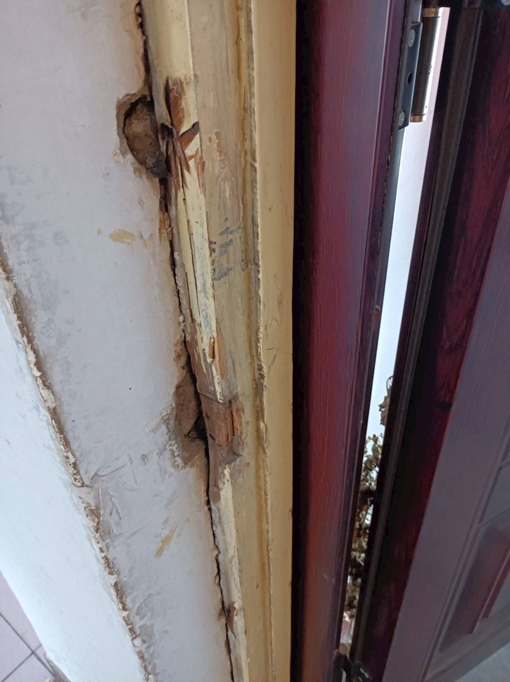 ![]() 这是被坏人踢坏的门,坏人经常破门而入。锁已经按不上了。 |