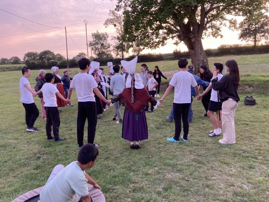 一位来自诺曼底传统舞蹈团的女士与几位法轮功学员相识。她曾经观看过神韵,有人向她提议,请她带着她的舞蹈团来表演诺曼底的传统歌曲和舞蹈,让大法小弟子也有机会体验这些舞蹈,因这些传统舞蹈在当今社会已经是鲜为人知,会跳的人就更少了。