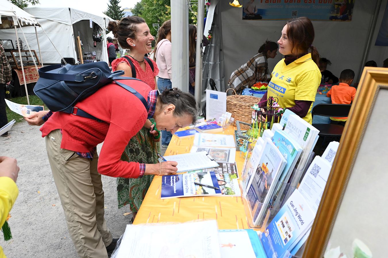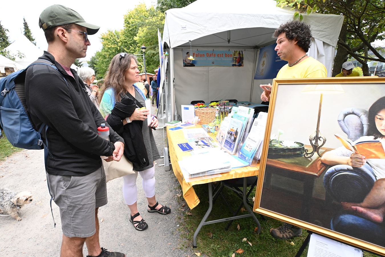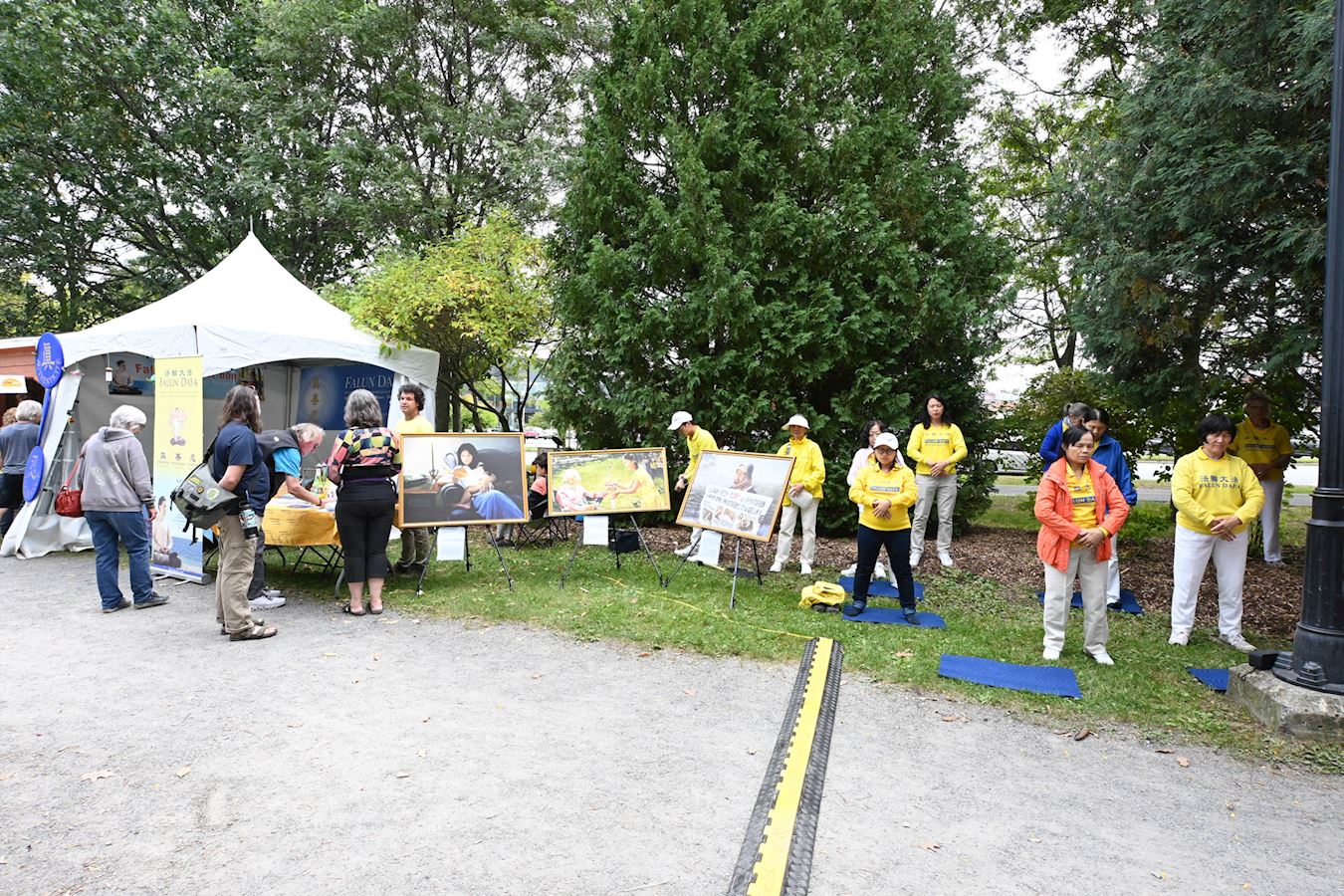 ![]() 图1:二零二四年九月二十一至二十二日,法轮功学员参加在魁北克省维多利亚城和平节。法轮功展位很受人们喜爱和欢迎。 |