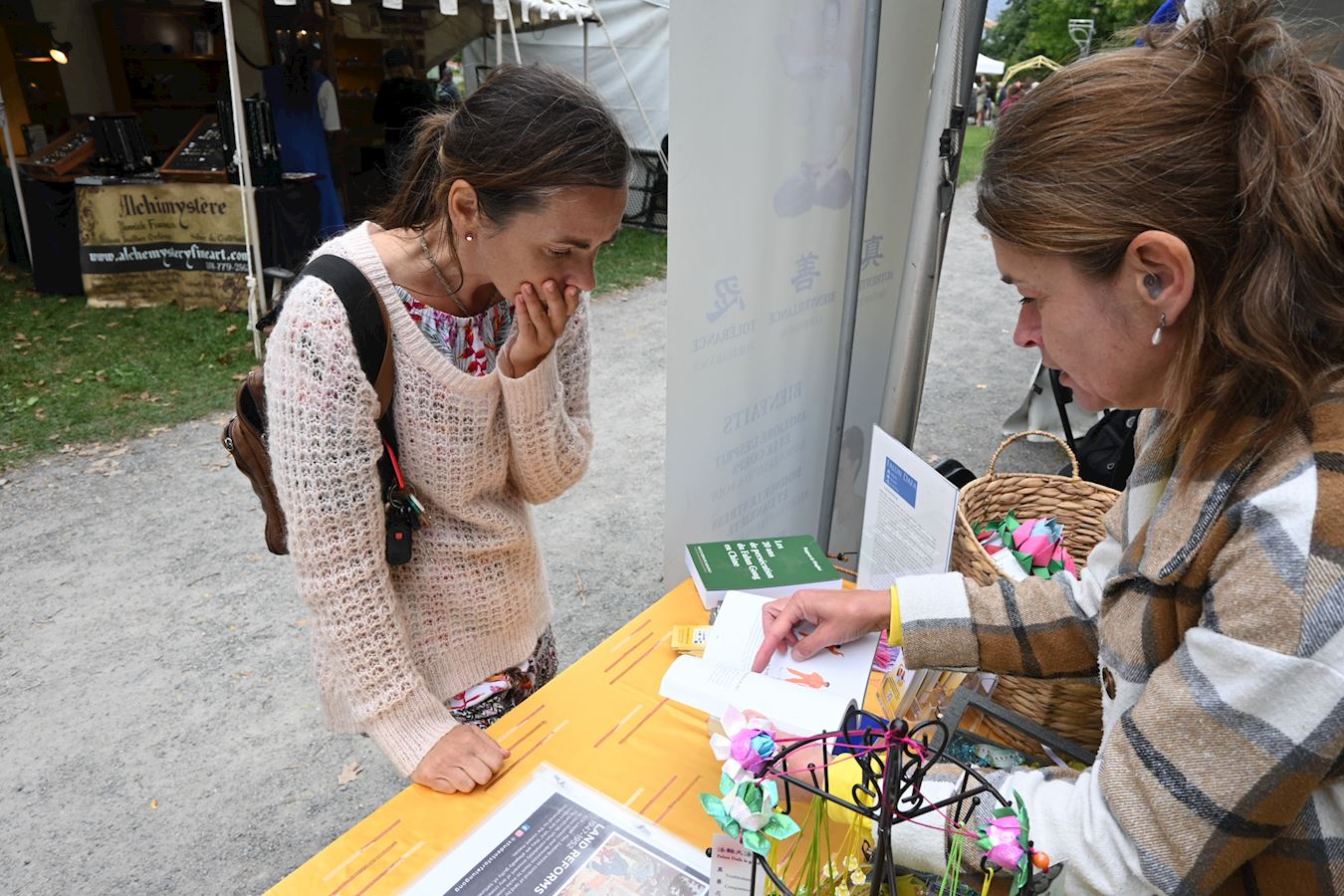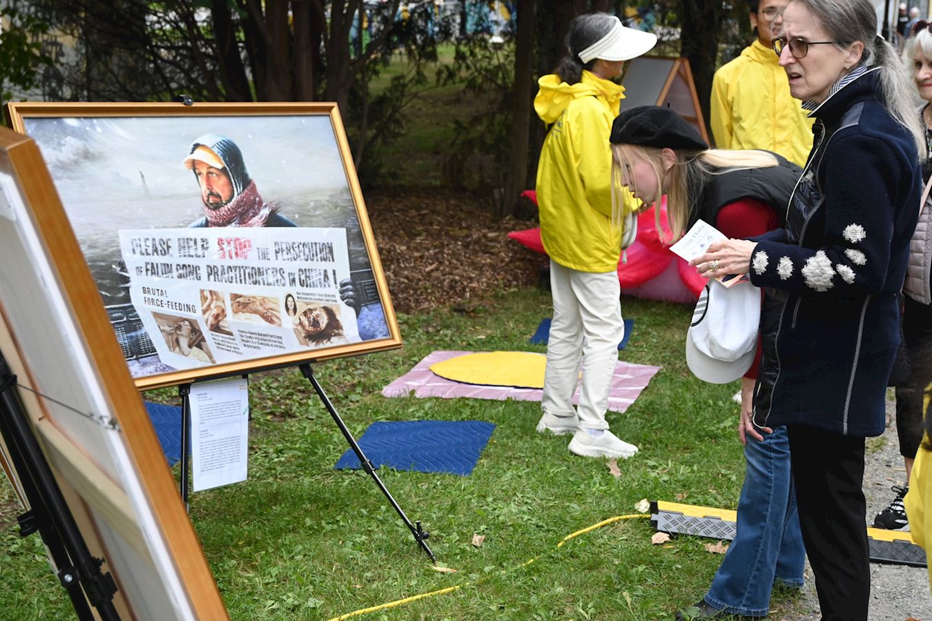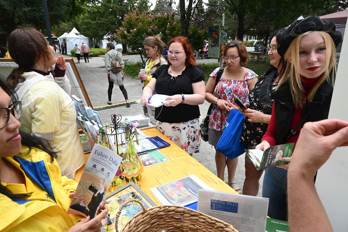![]() 图1:二零二四年九月二十一至二十二日,法轮功学员参加在魁北克省维多利亚城和平节。法轮功展位很受人们喜爱和欢迎。 |