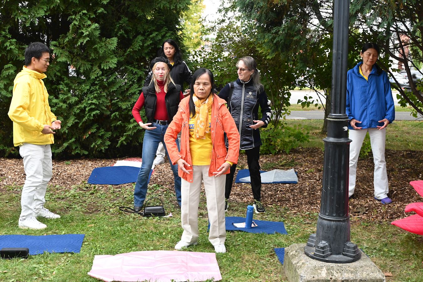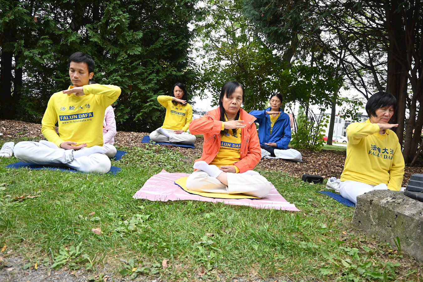 学员们在活动中集体炼功,并展出了真善忍艺术展中的三幅画作。他们在请愿书上征集签名,该请愿书呼吁魁北克政府用法律的形式对那些前往中国接受器官移植的人实施惩罚,从而阻止加拿大人参与中共强摘法轮功学员器官,而法轮功学员是器官的主要来源。