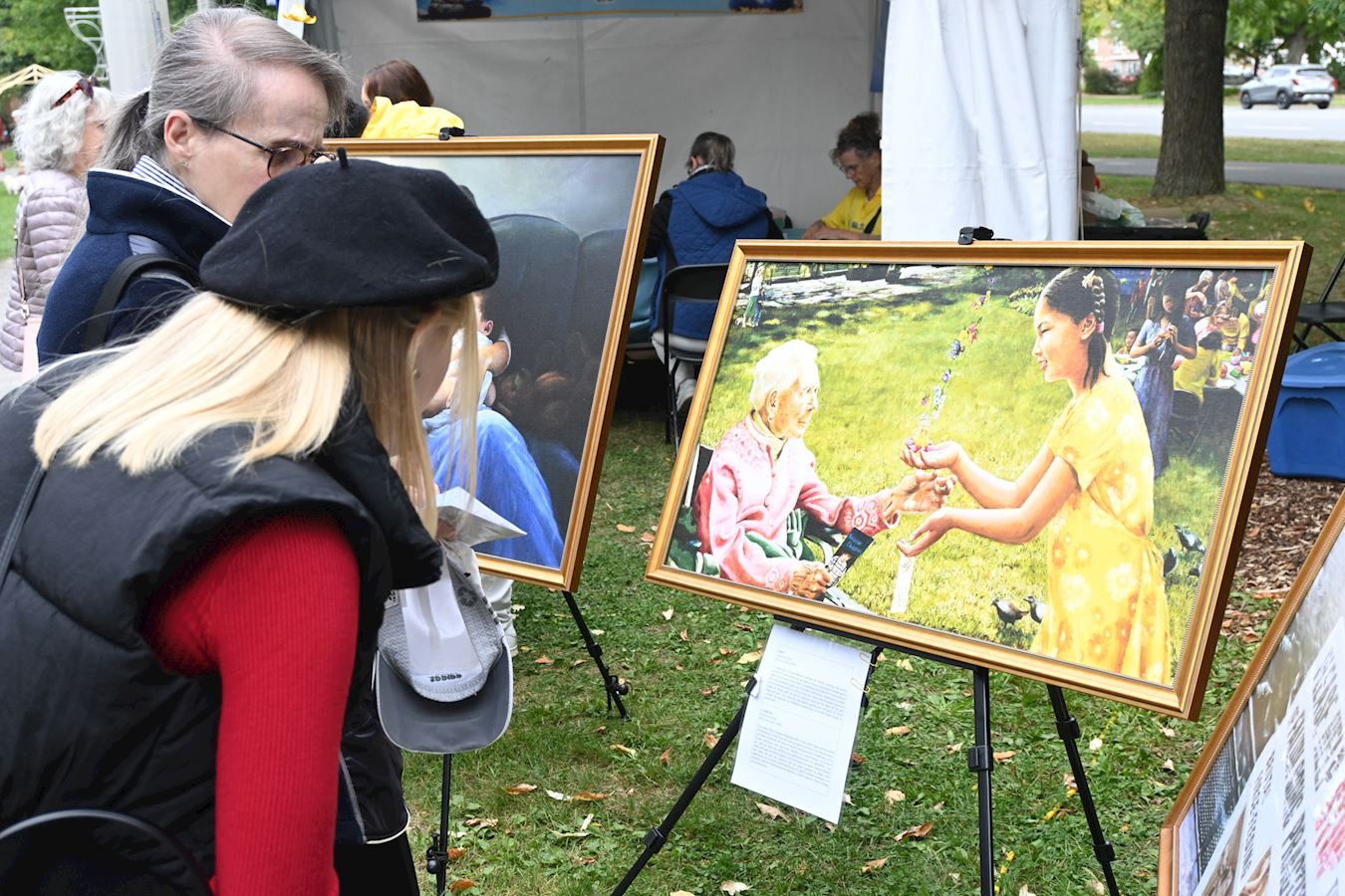 和平节的组织者之一安妮‧博米尔(Anne Beaumier)对法轮功学员的参与感到高兴。她说,法轮功展位就在入口处,这很重要,因为法轮功的存在就会“带来和平与安宁”。她提到,在节日开始之前,维多利亚维尔市中心曾发生过几起吸毒滋事案件,但和平节活动开始之后都销声匿迹了,她赞扬法轮功学员说:“你们是节日的守护者。”