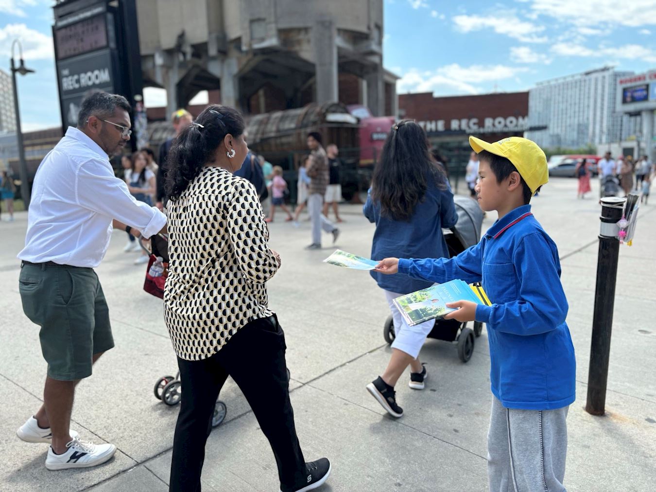 周末,能能和妈妈一起去法轮功真相点。夏日阳光火辣,真相点没有树荫遮蔽,一站就是几个小时,能能有时会觉得很累。一次,遇到几个中国人,对他态度很不好。能能感到气馁,但在同修姐姐的鼓励下,很快又打起精神继续发传单了。