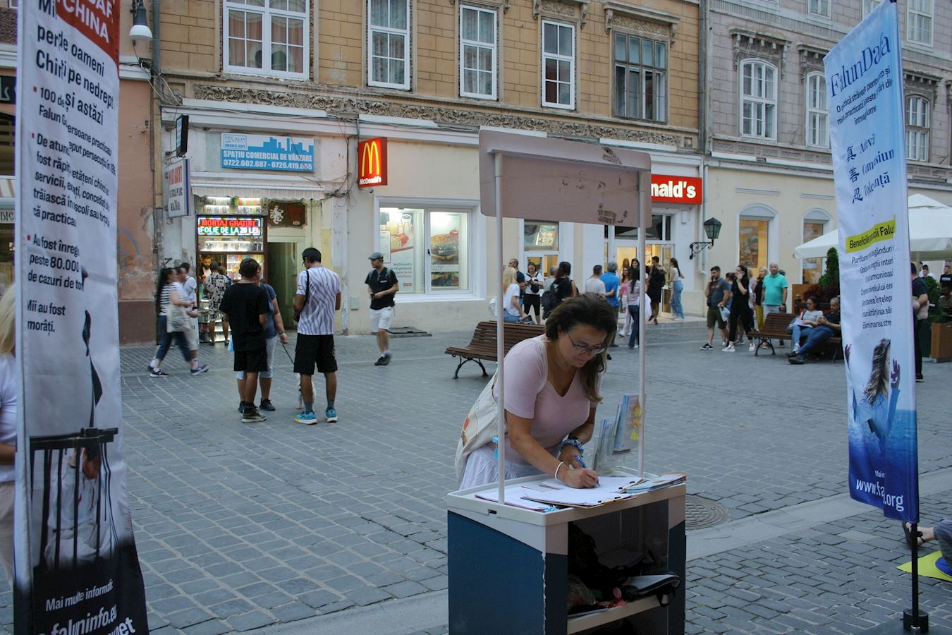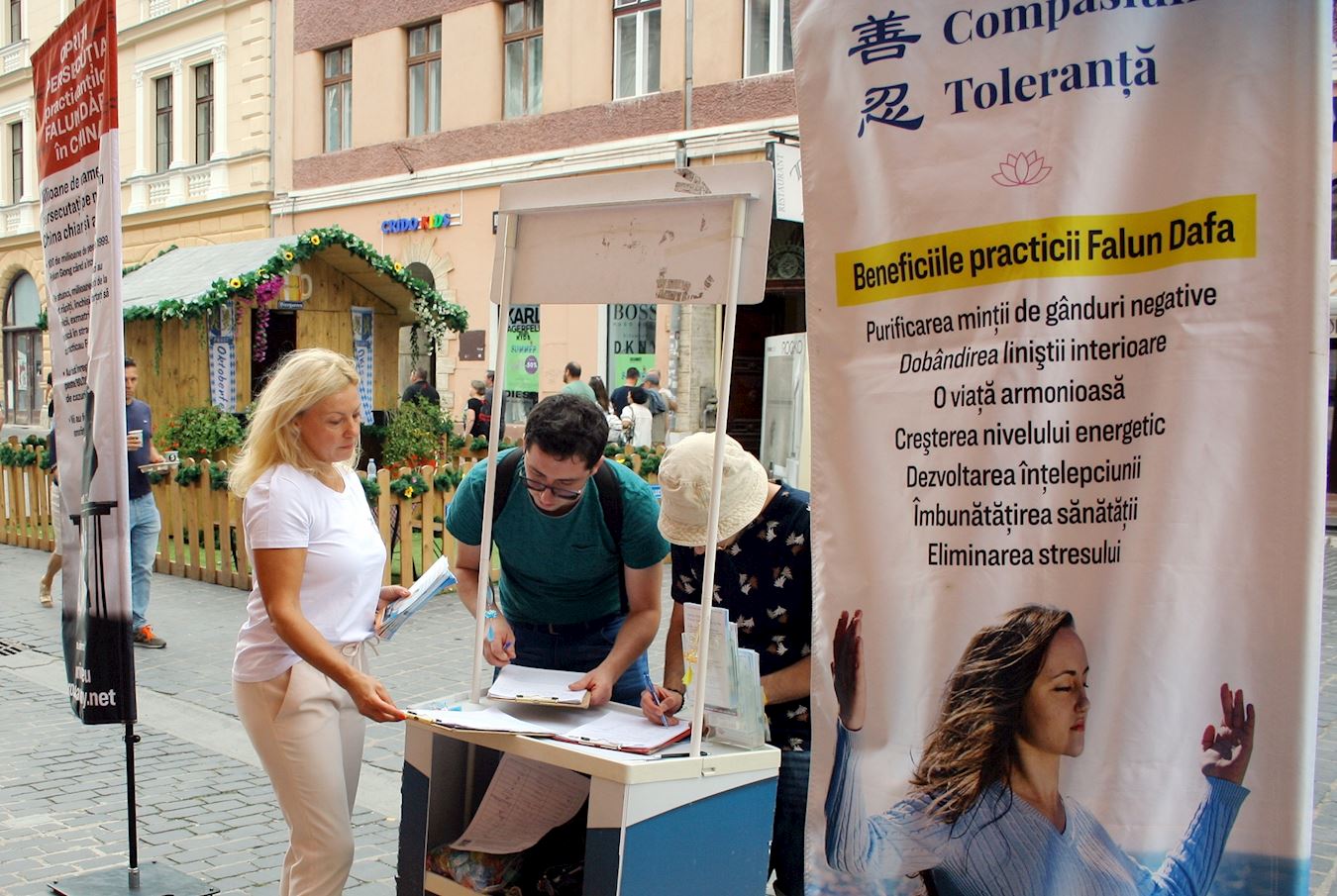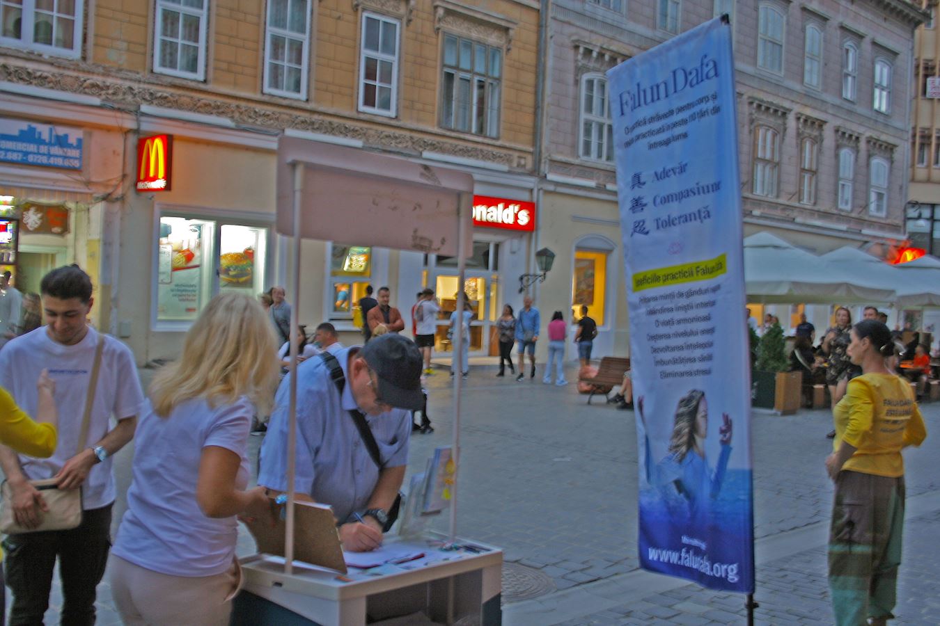 来自布拉索夫的年轻人亚历山德鲁·拉扎尔主动上前,在反对迫害的请愿书下了自己的名字,学员向他介绍请愿书的内容以及在中国发生的迫害,亚历山德鲁说:“当我阅读了请愿书的标题,不需要太多解释,就会了解请愿书的目的是什么。这可以帮助拯救这些人,并从世界上消灭共产主义。”