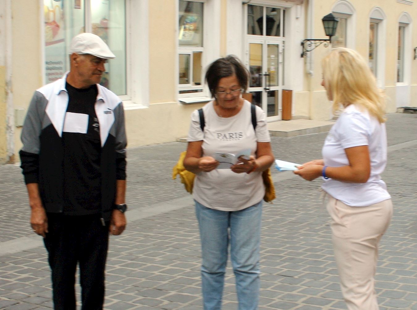 一对夫妇在海外生活了四十多年,今天回到布拉索夫的家乡看望亲友。他们表示,了解到法轮大法在美国的弘传情况,也知道法轮功在中国所遭受的迫害。他们知道那些身在美国的法轮功学员,其在中国的家人也在承受迫害。夫妇二人询问,“那本蓝皮书(《转法轮》)是否还能买到?”学员向他们介绍说,可以购买实体书,也可以在法轮大法网站上免费阅读。