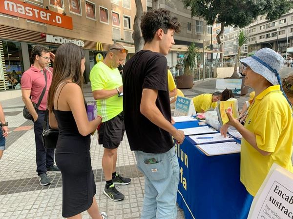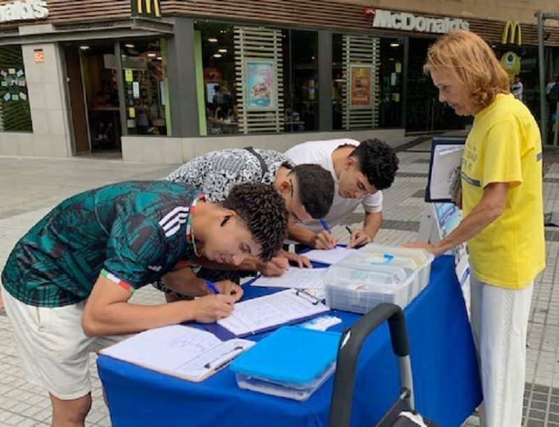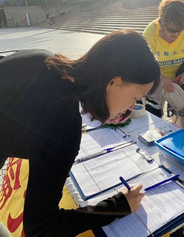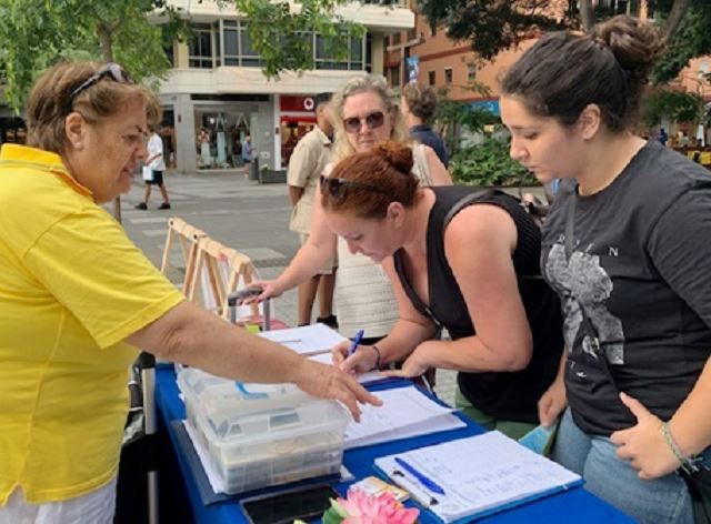 十八岁的华裔女孩阿罗拉(Aurora)在三岁的时候被一对西班牙夫妇领养,她接受了一名学员递送的传单,她之前不知道法轮大法,也不知道对法轮功的迫害。在了解情况后,她决定通过签名的方式来表示支持。她表示:“迫害虽然离我很遥远,但是迫害法轮功是不允许的,必须制止。”