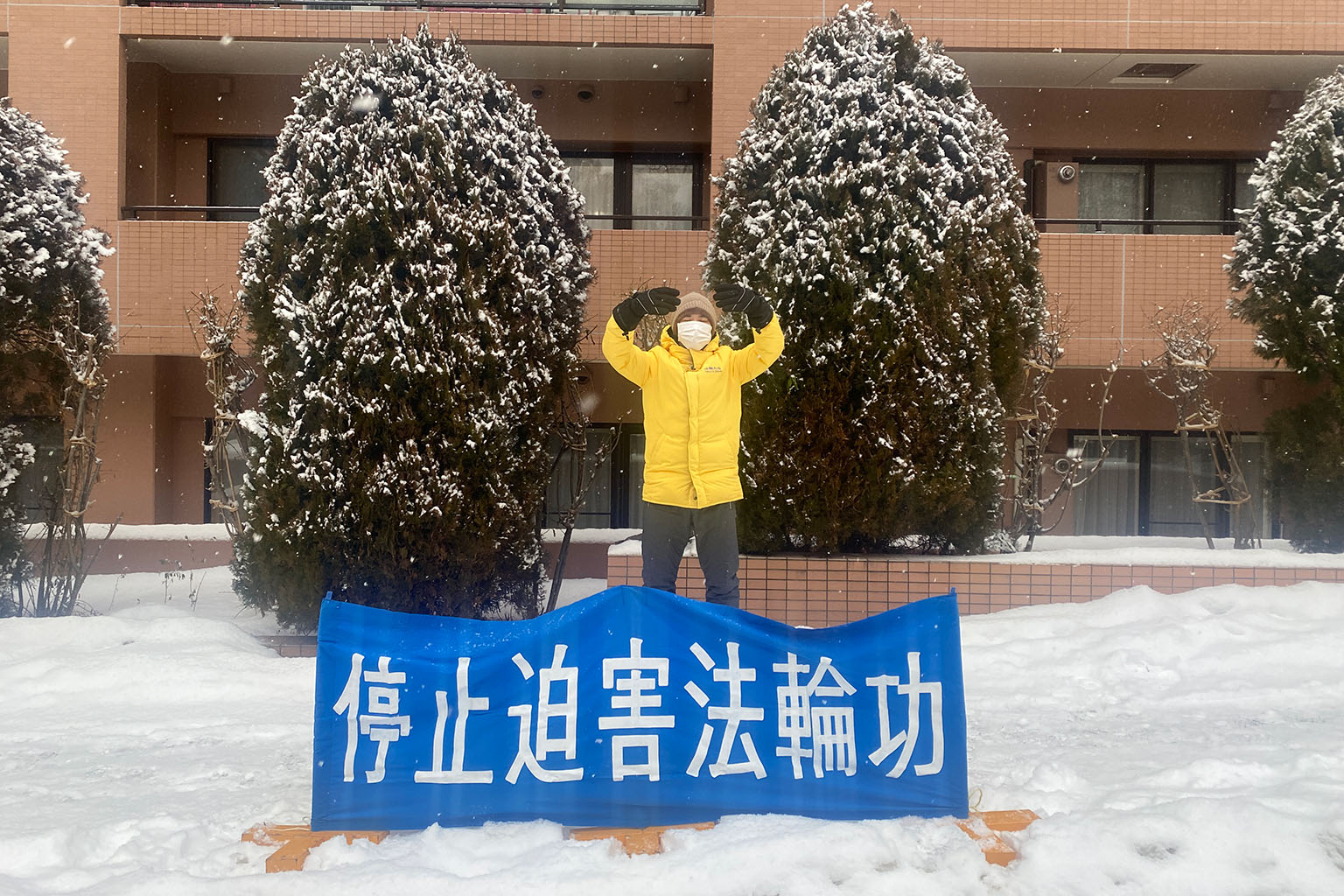 二零二四年十二月三十一日的跨年前夕,部份日本法轮功学员也来到中共驻大阪中领馆、名古屋中领馆、札幌中领馆前请愿,打出横幅和平抗议,要求中共立即停止对法轮功的迫害,停止活摘器官,并释放所有被非法关押的法轮功学员。
