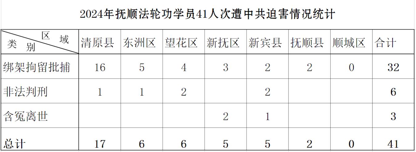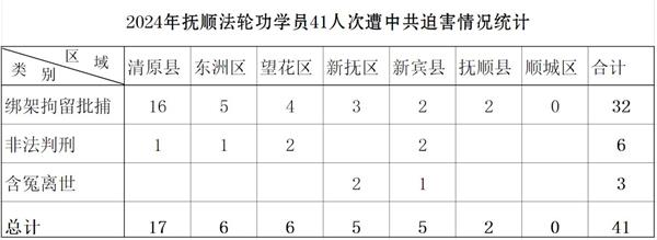 统计时间二零二五年一月一日。参与绑架单位:1)抚顺国保; 2)清原县公安局、湾甸镇、清原县桥北、敖家堡派出所; 3)望花区(海城、建设、李石派出所)4)新抚区(千金、福民、南花园、新抚、站前、刘山派出所)5)东洲区(东洲公安分局、老虎台派出所)6)新宾县公安局、新宾镇派出所; 7)外地:葫蘆島、大连、沈阳。