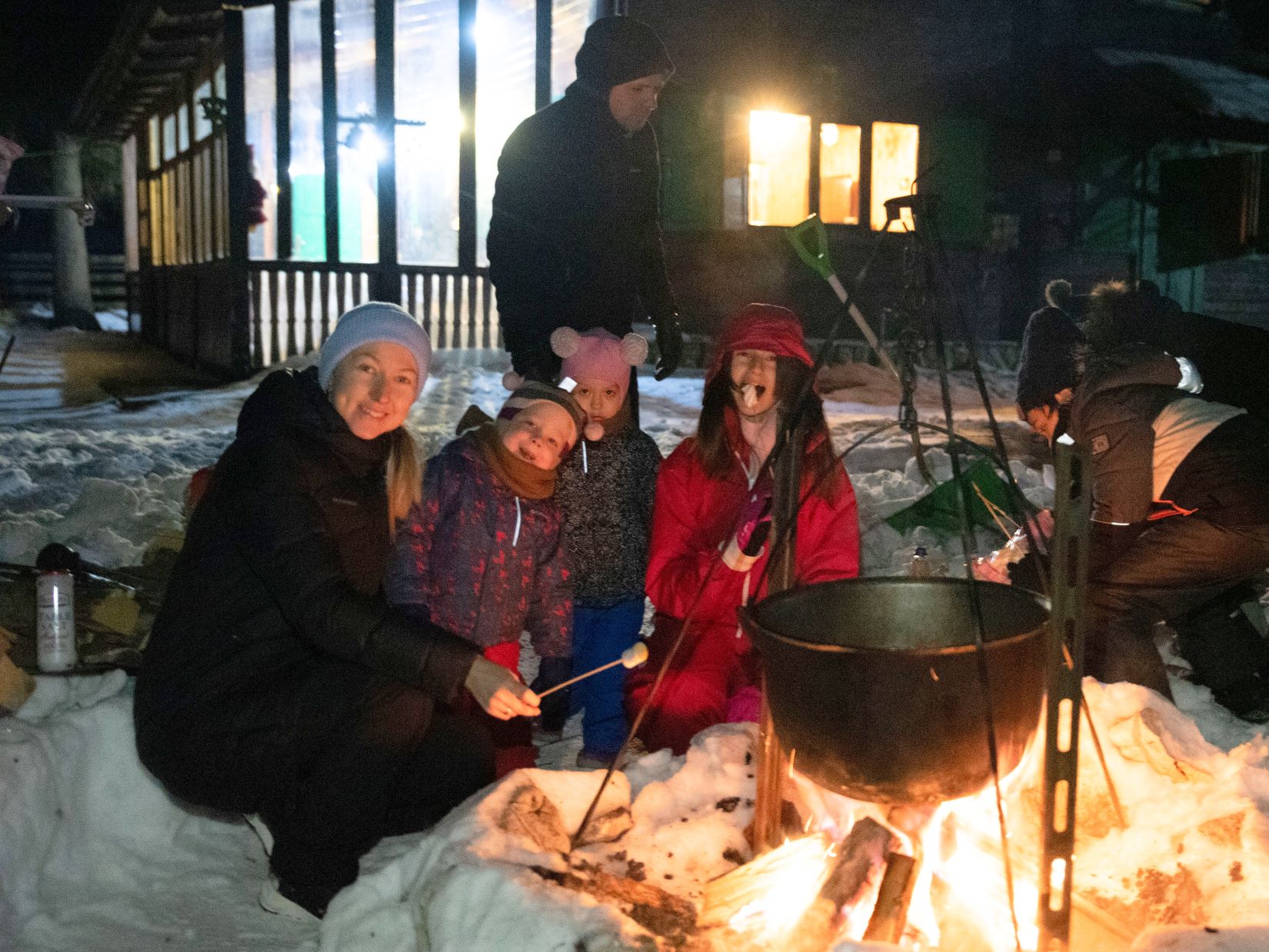 ![]() 图7:参加冬令营的小朋友们正在烤篝火。 |