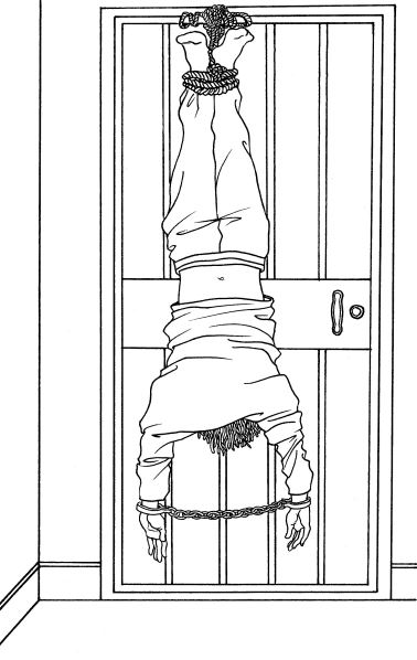 ![]() 中共酷刑示意图:“倒挂 | ![]() 中共酷刑示意图:浇冰水 |