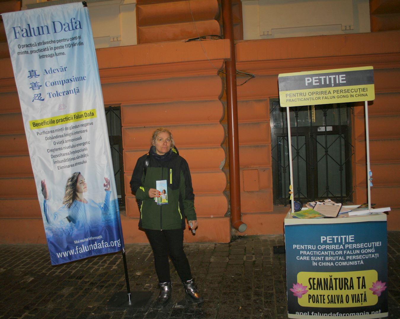 来自阿尔巴尤利亚(Alba Iulia)的教师波帕·戴安娜·伊琳娜(Popa Diana Irina)十六年前曾在蒂米什瓦拉(Timisoara)看到过法轮功学员发起的征签活动,她反对中共非法摘取器官的行为,并对法轮大法表示支持。