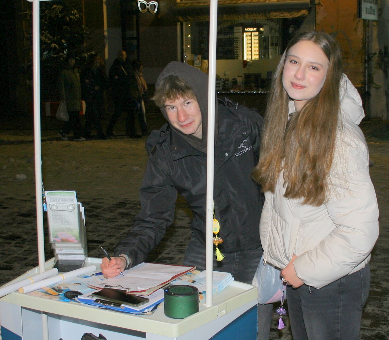 ![]() 图3:二零二五年一月十一日,玛拉(右)和弗拉德签署呼吁停止迫害法轮功的请愿书 |