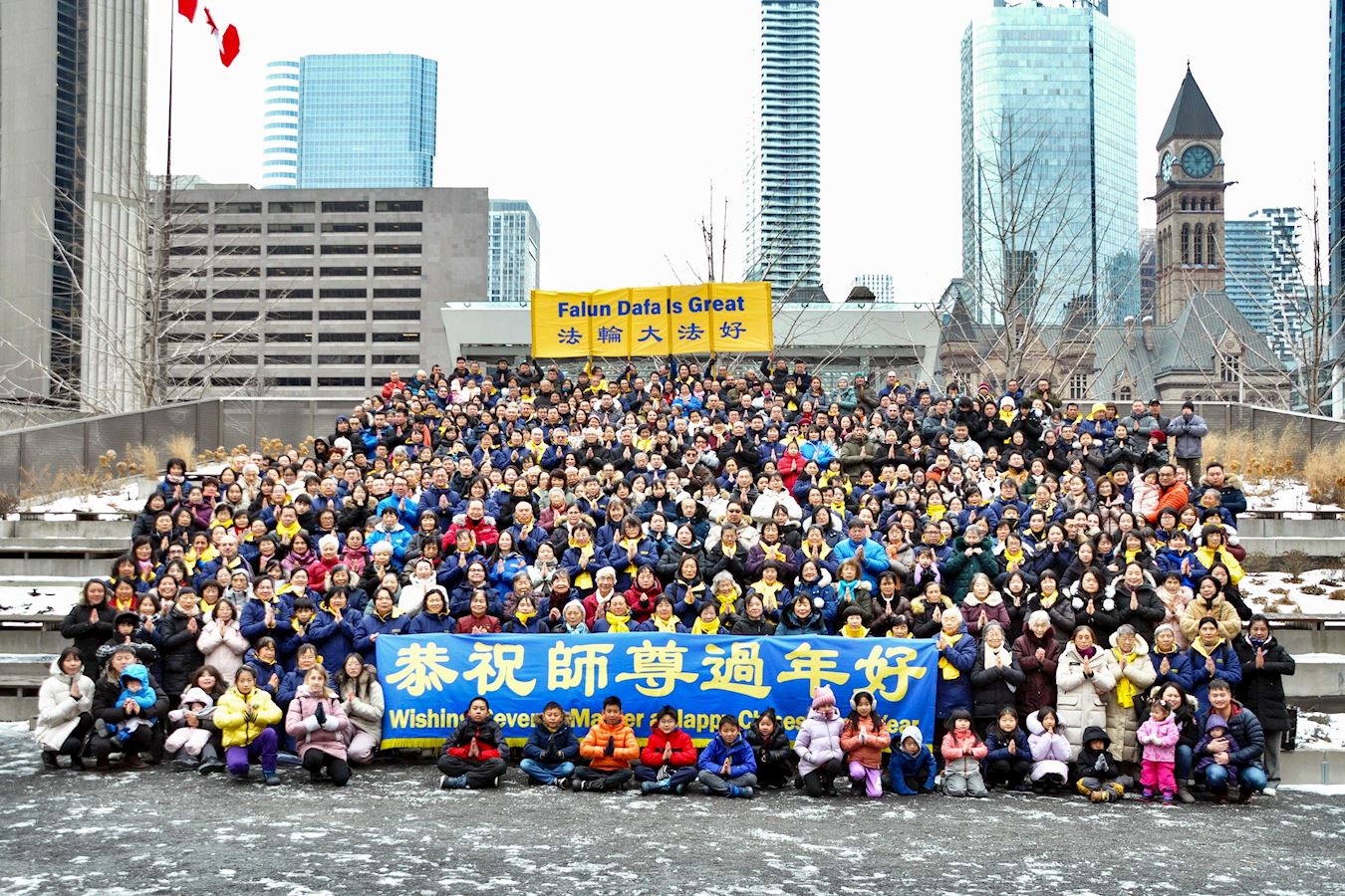 ![]() 图1:二零二五年一月二十五日,加拿大多伦多大法弟子在内森•菲利普斯广场恭祝师父过年好! |