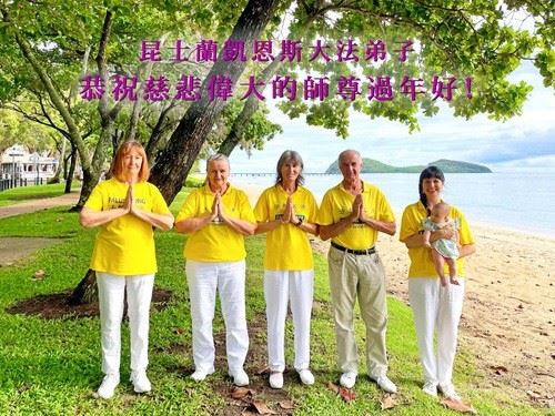 ![]() 图1:达努塔(左二)与澳洲昆士兰凯恩斯法轮功学员一起恭祝师父过年好! |