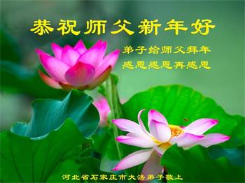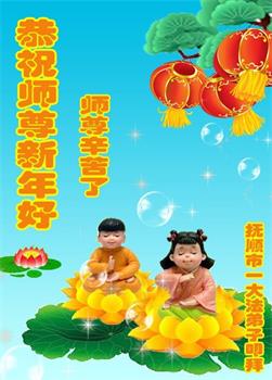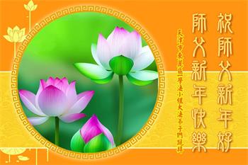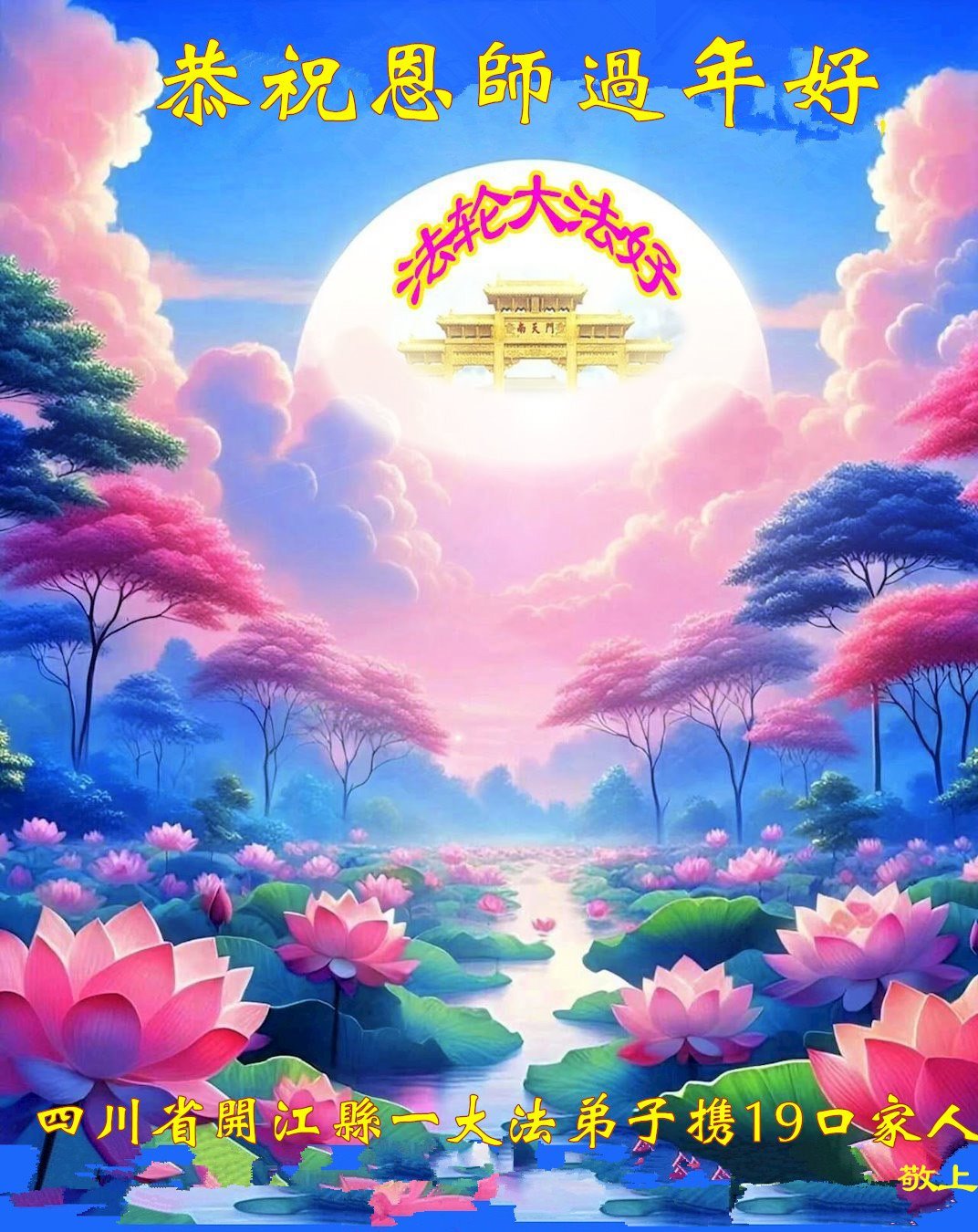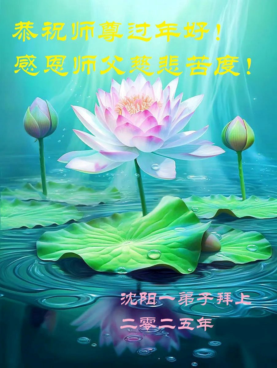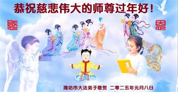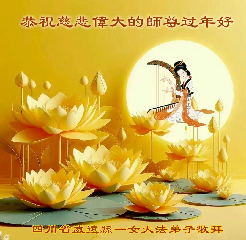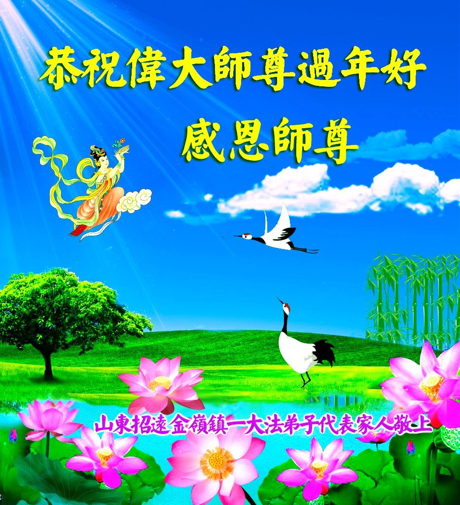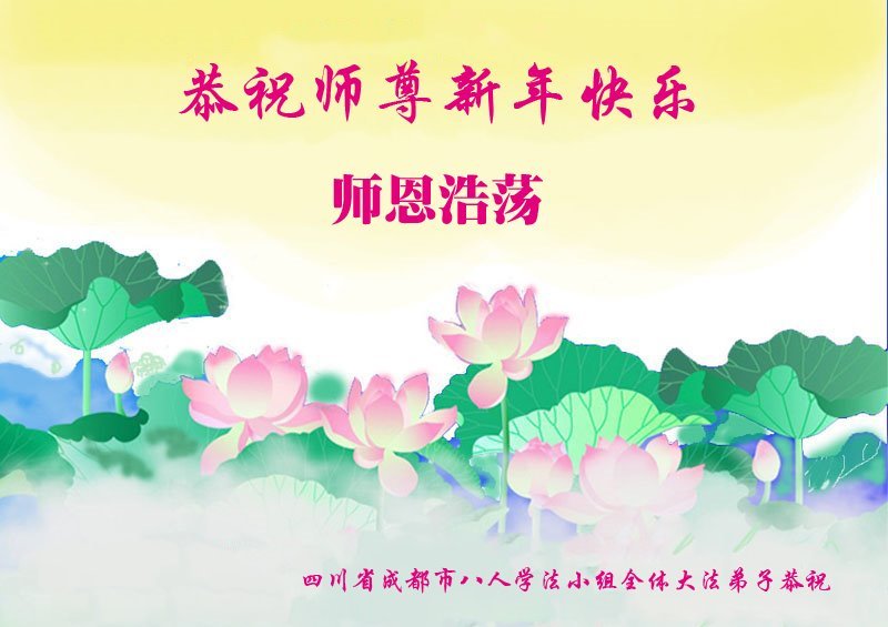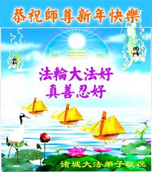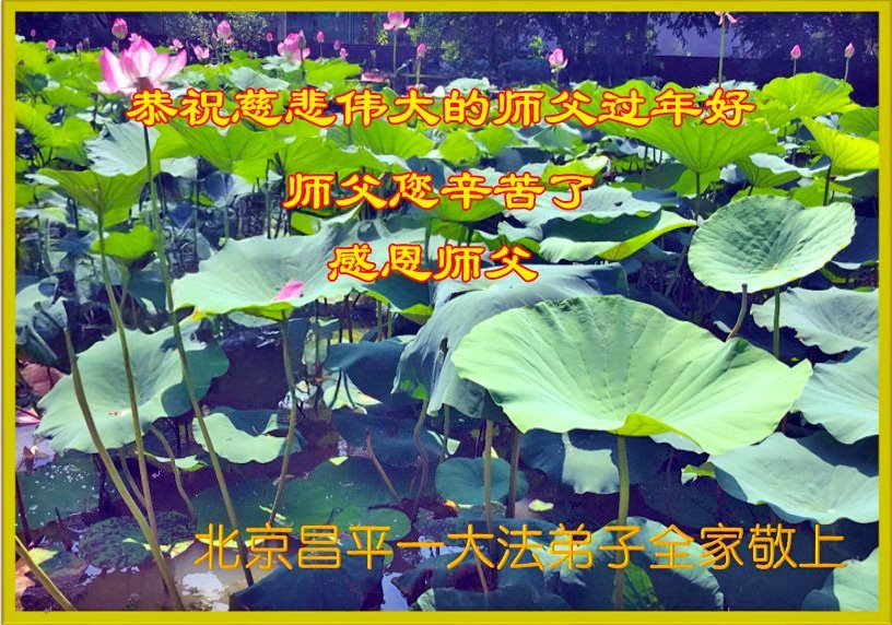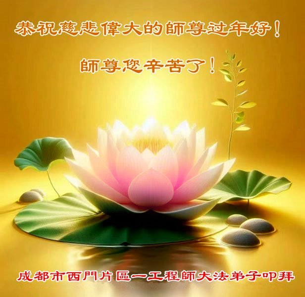感恩师父的慈悲救度!感恩师父将我们从地狱中捞出洗净,引领我们走上一条返本归真之路。在新年到来之际,我们全家大法弟子及新学员(共6人)给慈悲伟大的师尊拜年:师父过年好!师父您辛苦了!