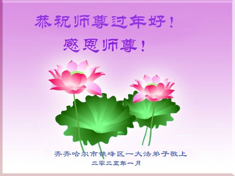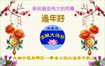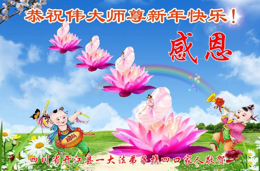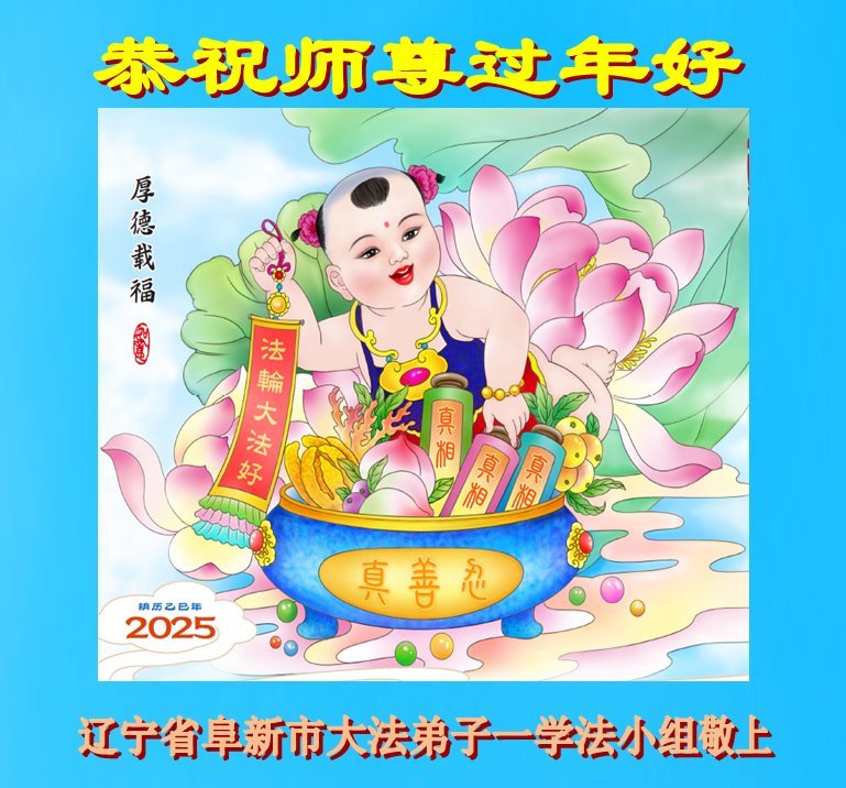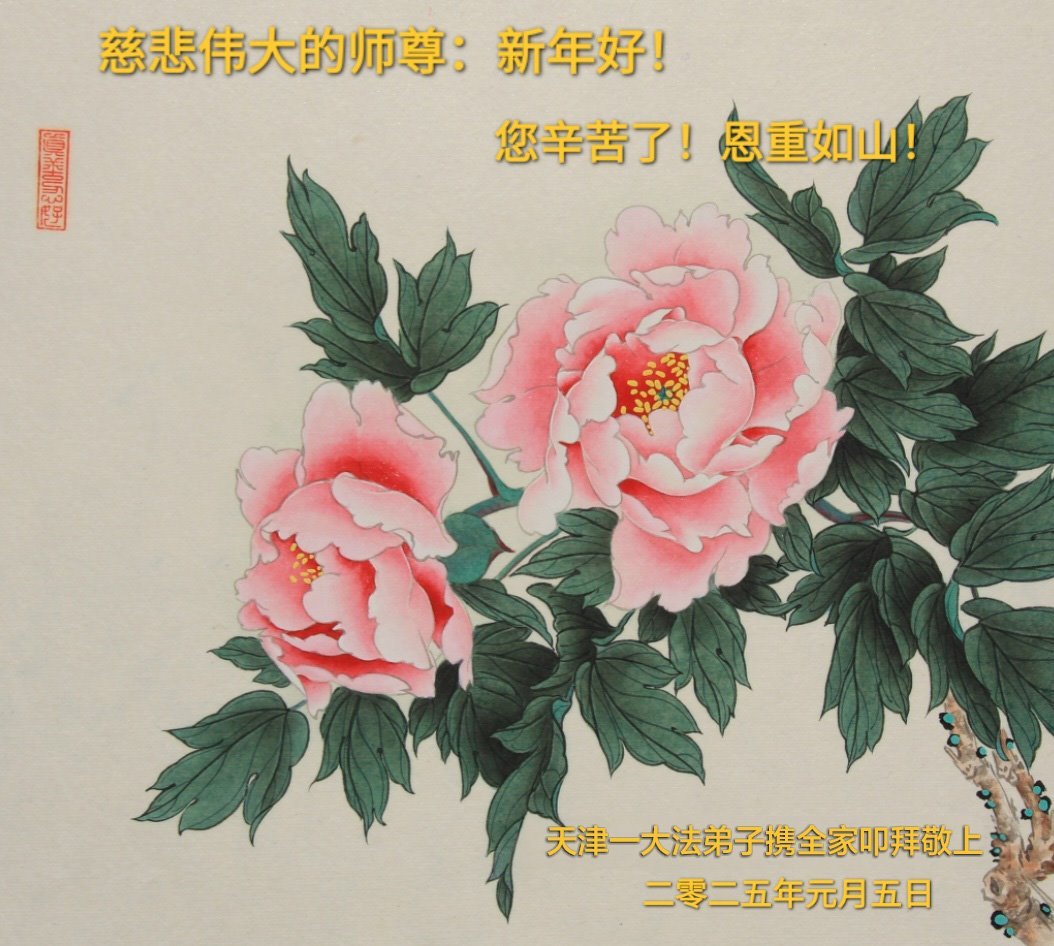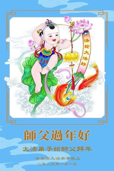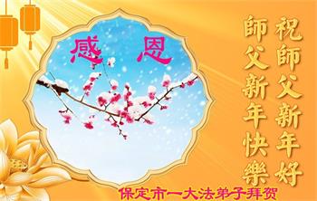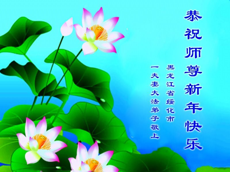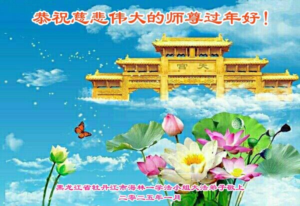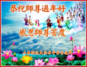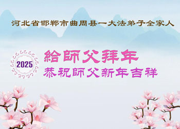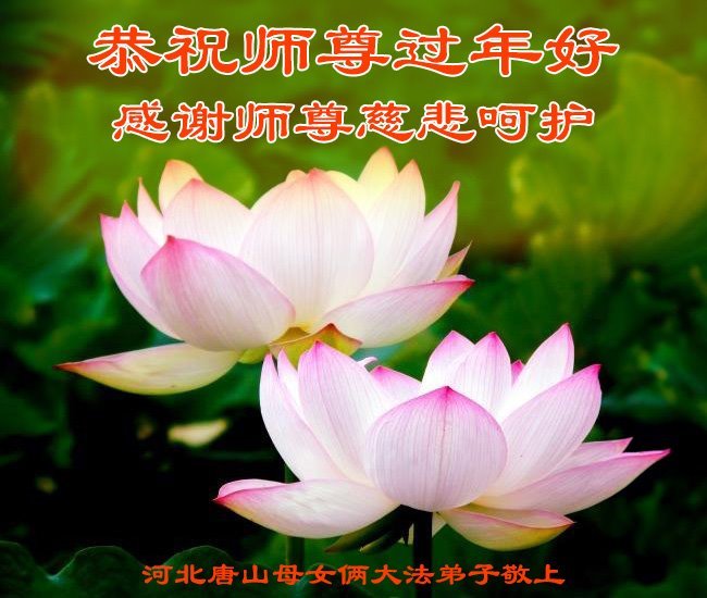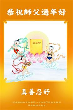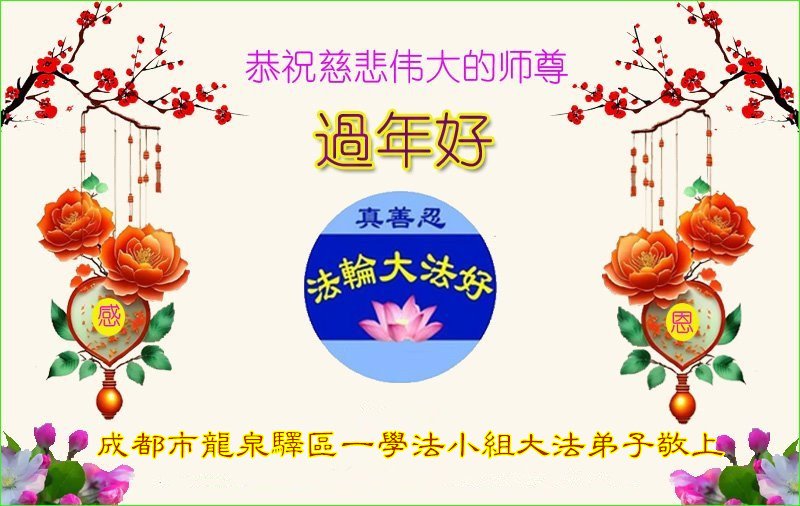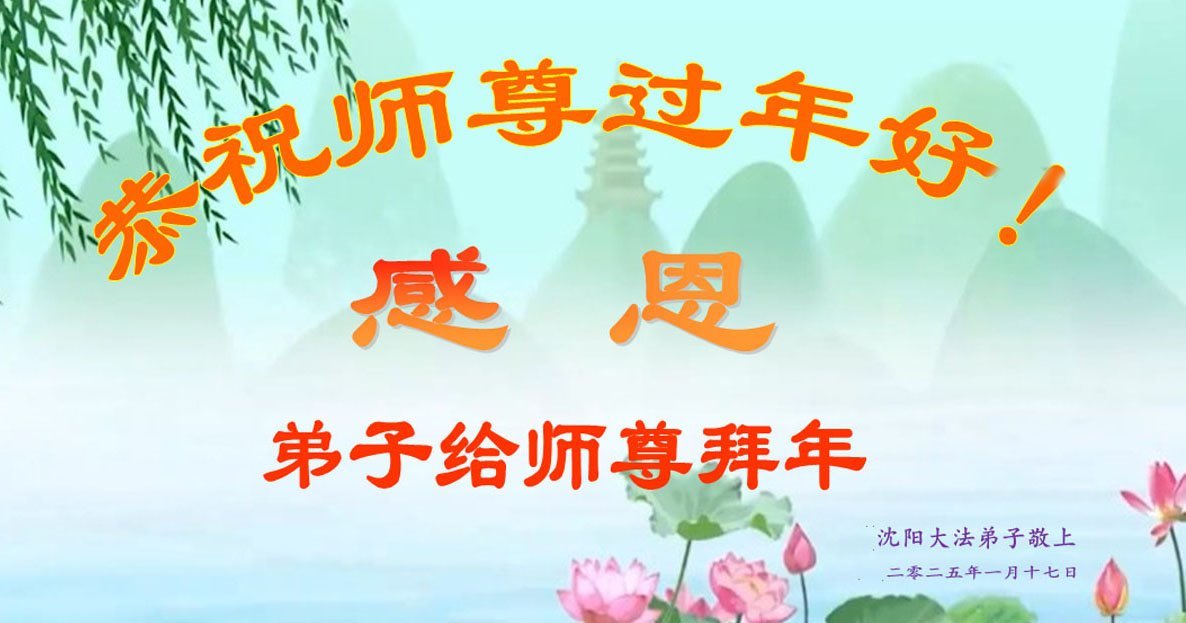 感恩师父的慈悲救度!感恩师父将我们从地狱中捞出洗净,引领我们走上一条返本归真之路。在新年到来之际,我们全家大法弟子及新学员(共6人)给慈悲伟大的师尊拜年:师父过年好!师父您辛苦了!