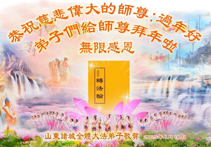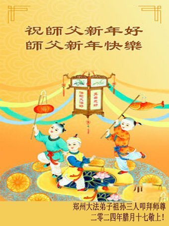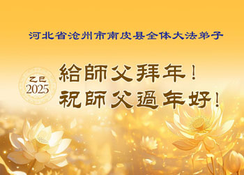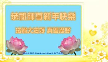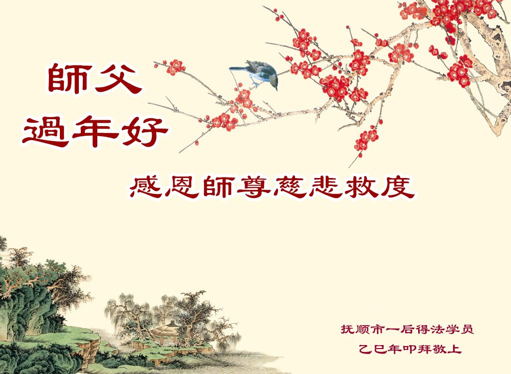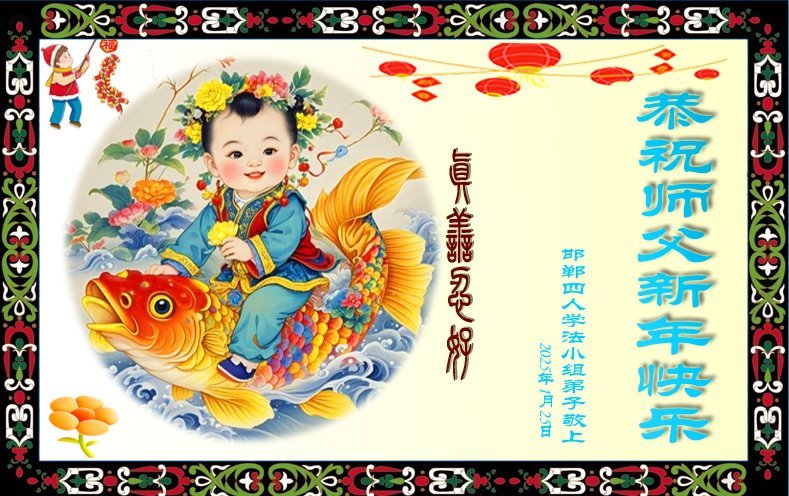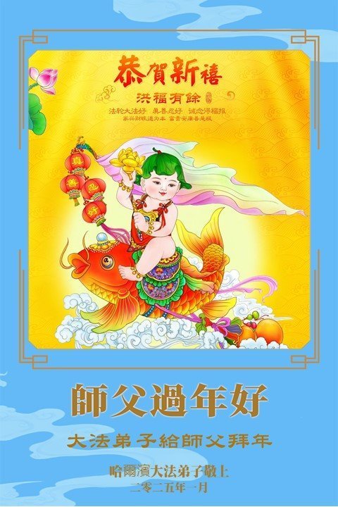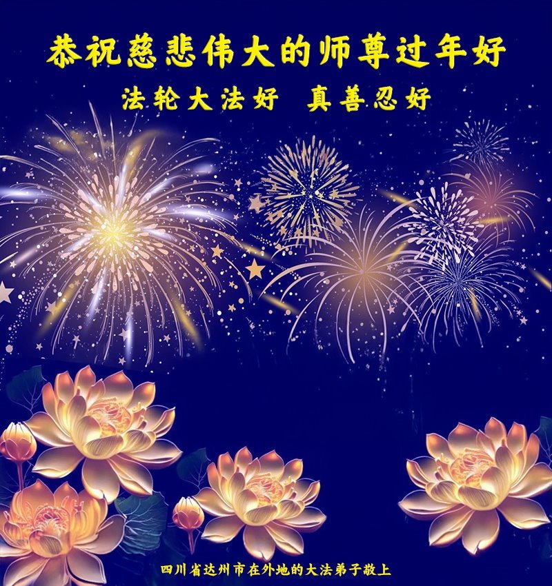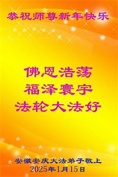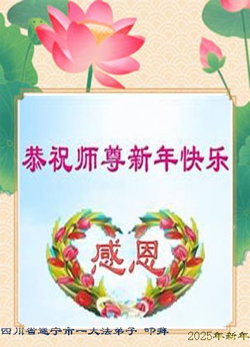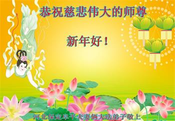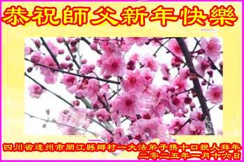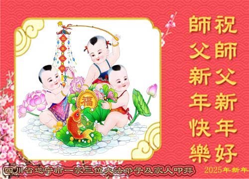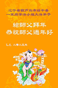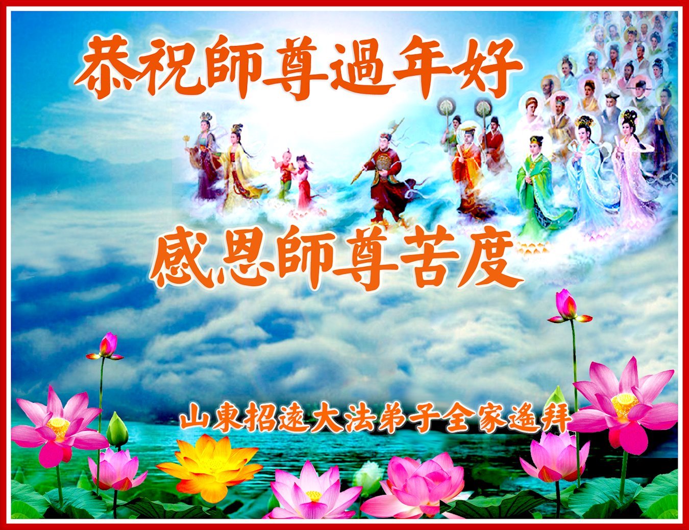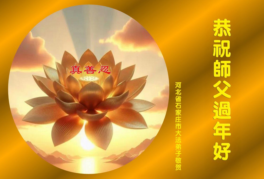 感恩师父的慈悲救度!感恩师父将我们从地狱中捞出洗净,引领我们走上一条返本归真之路。在新年到来之际,我们全家大法弟子及新学员(共6人)给慈悲伟大的师尊拜年:师父过年好!师父您辛苦了!