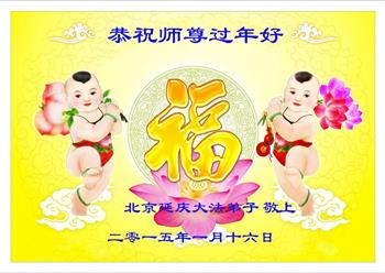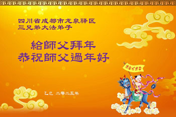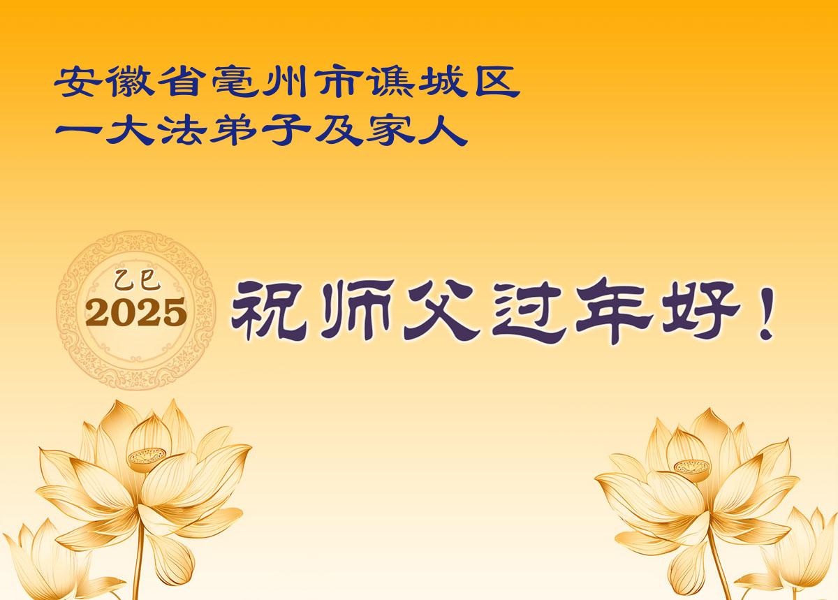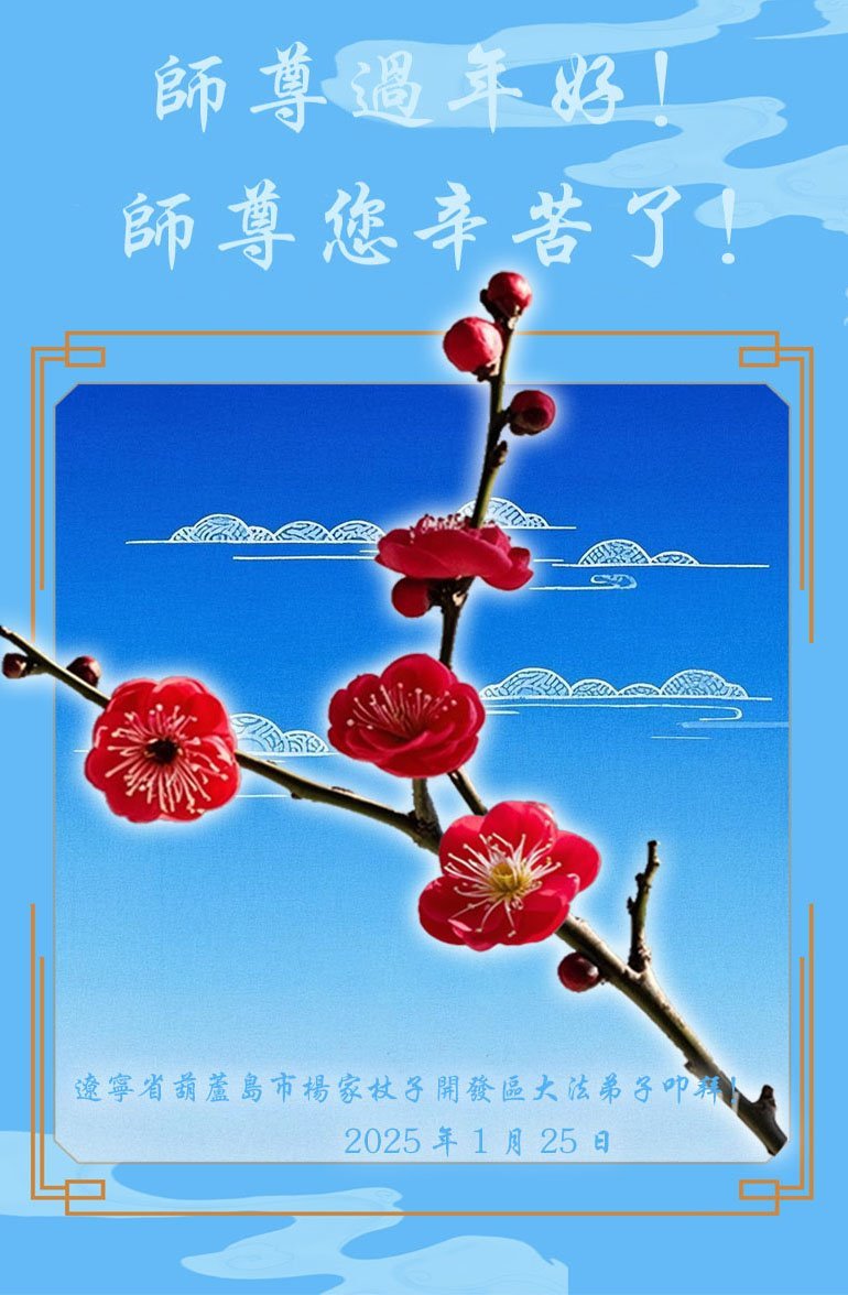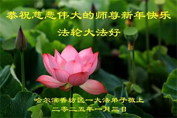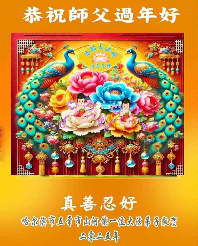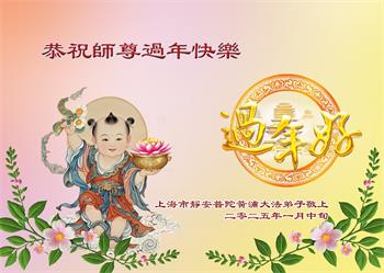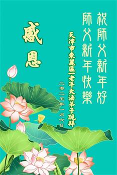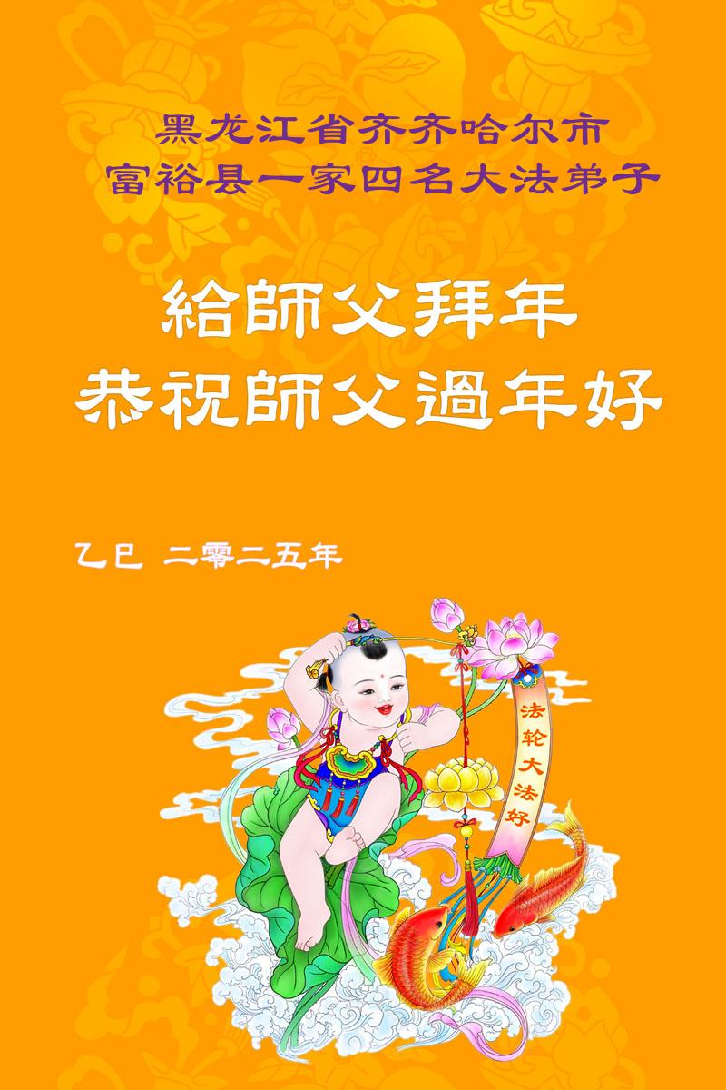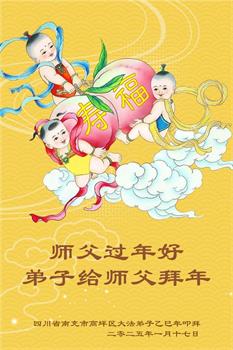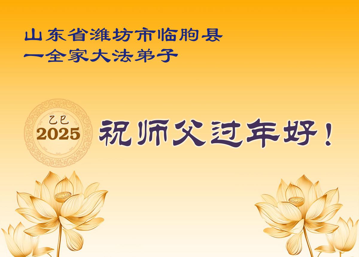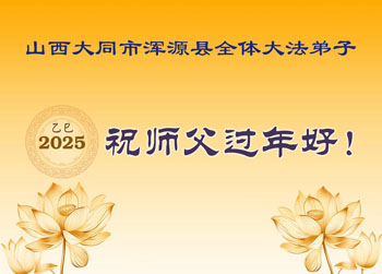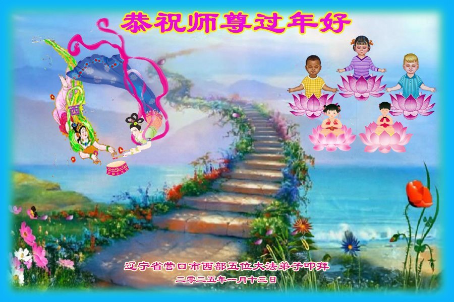 感恩师父的慈悲救度!感恩师父将我们从地狱中捞出洗净,引领我们走上一条返本归真之路。在新年到来之际,我们全家大法弟子及新学员(共6人)给慈悲伟大的师尊拜年:师父过年好!师父您辛苦了!