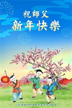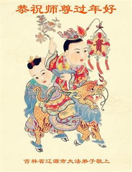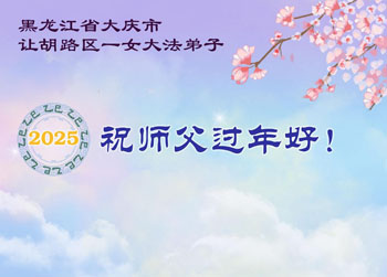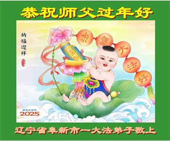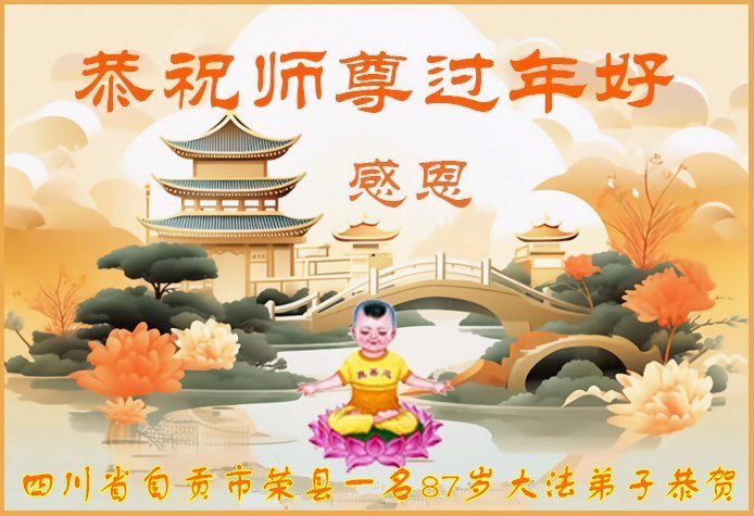 我今年八十四岁,是得法四年的新学员。我身上几种难治的病都好了。我这么大岁数了,师父为我清理身体、祛病,我真心感谢师父救命之恩!我们全家人祝师父过年好!