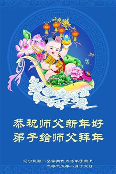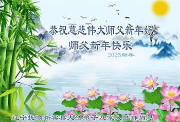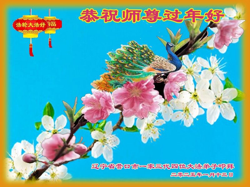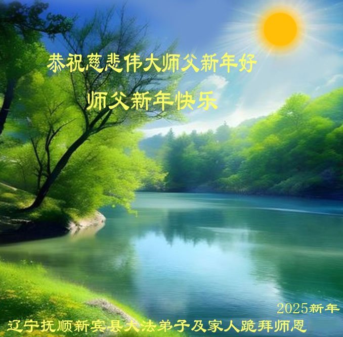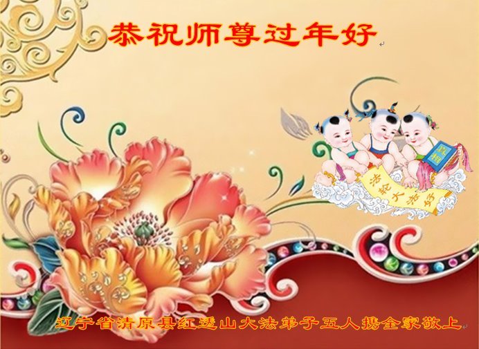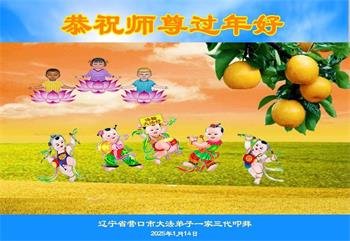 我是辽宁省凌源市农民,也是一名新学员,我带领我全家人给师父送上新年祝福,恭祝慈悲伟大的师父新年快乐!