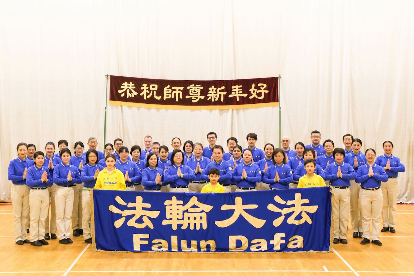 ![]() 图3:蒙特利尔天国乐团成员向师父拜年。 |