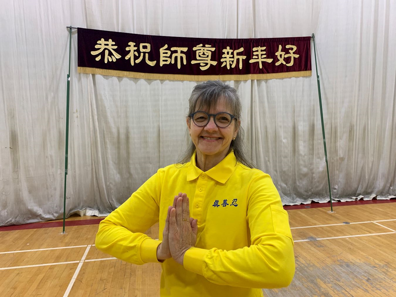 一月十九日,在蒙特利尔CEGEP du Vieux Montréal学院体育馆内,蒙特利尔天国乐团成员在通过视频向师父拜年之前,演奏了《谢谢师父》,以表达对师父的感恩。
