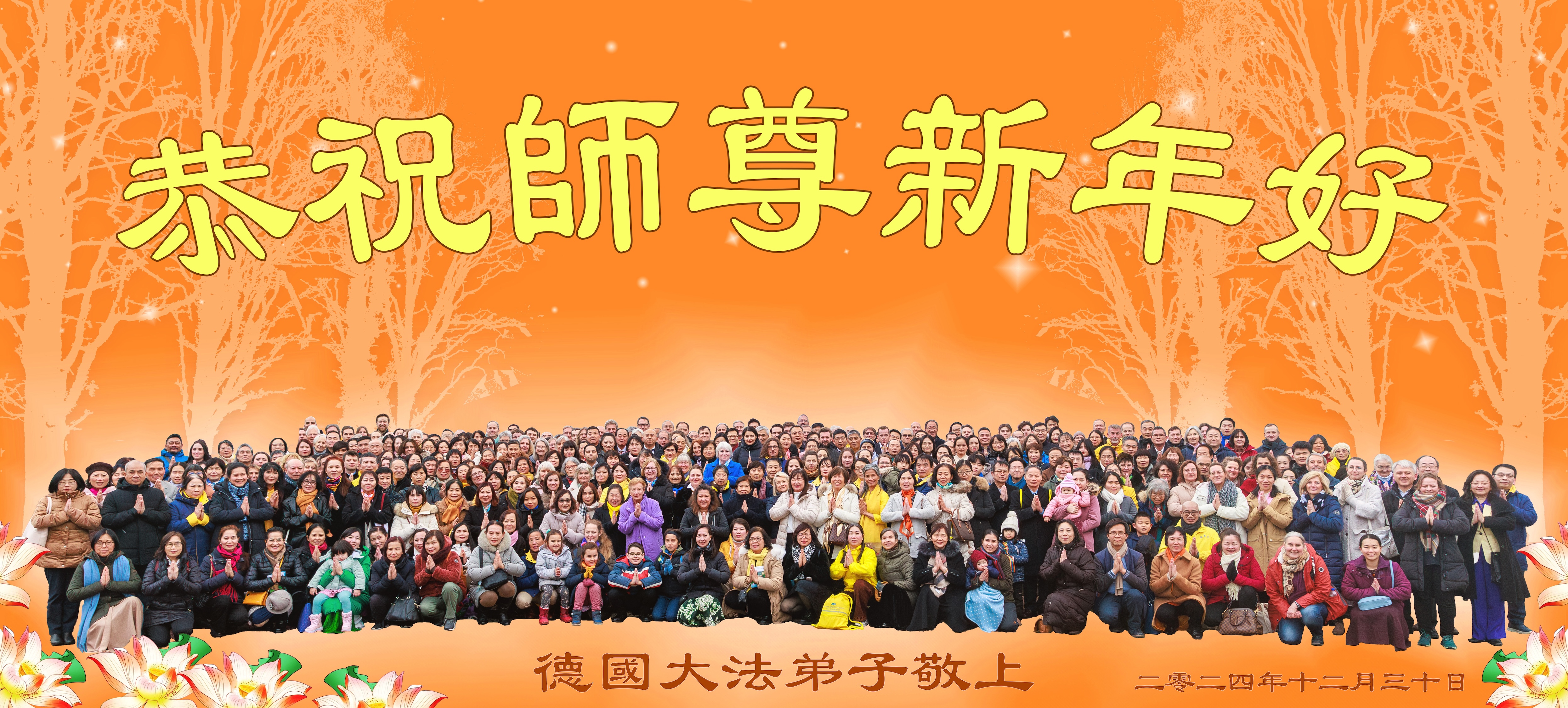 ![]() 图1:来自德国、部份奥地利和瑞士德语区的法轮功学员恭祝师尊新年快乐。 |