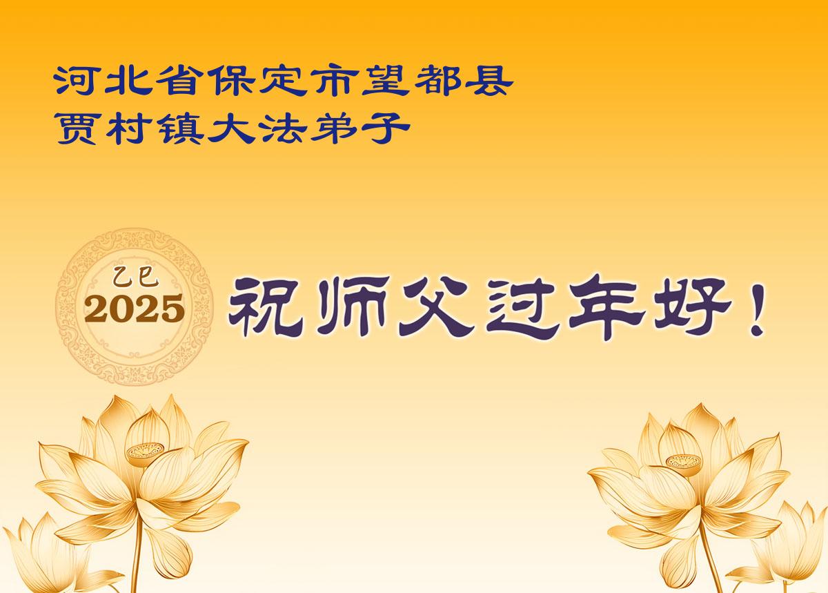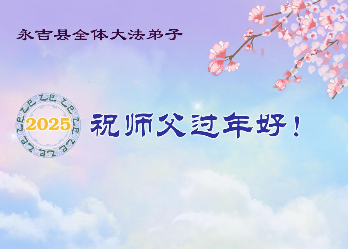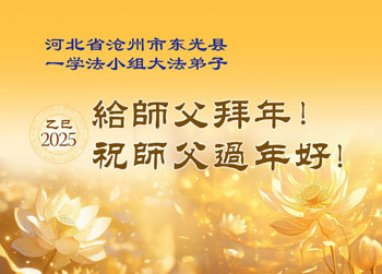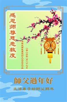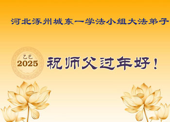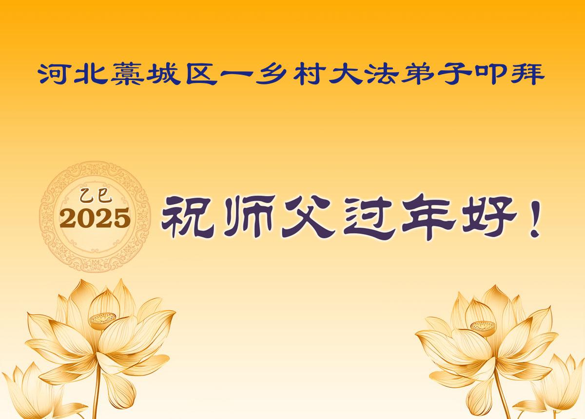 恭祝师尊新年好!我们俩是八、九十岁的老年大法弟子,我们村百分之八、九十的人都明白了真相,做了三:退.,包括村书记。明白真相的村民们都用他们的智慧保护大法弟子。这里的众生也都得到了神的慈悲保护。疫情以来,我们村无一人因瘟疫而去世的,有人因相信大法好而得福报的;有人因诚心敬念“法轮大法好、真善忍好”使癌症晚期痊愈……弟子替得救众生谢谢师父!恭祝师父新年好!
