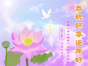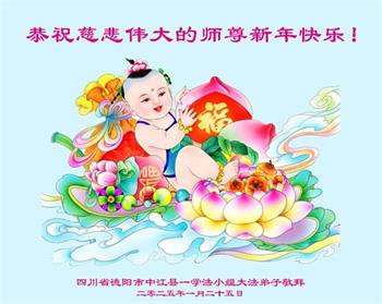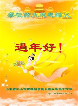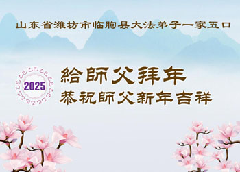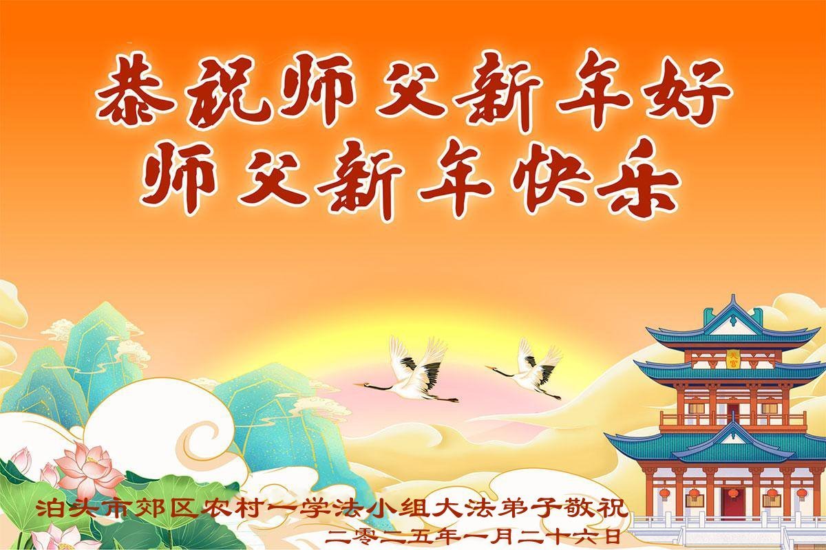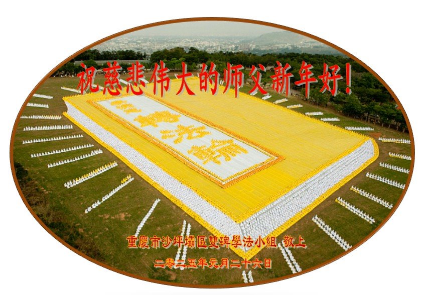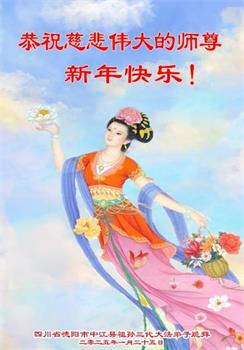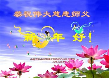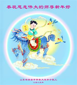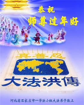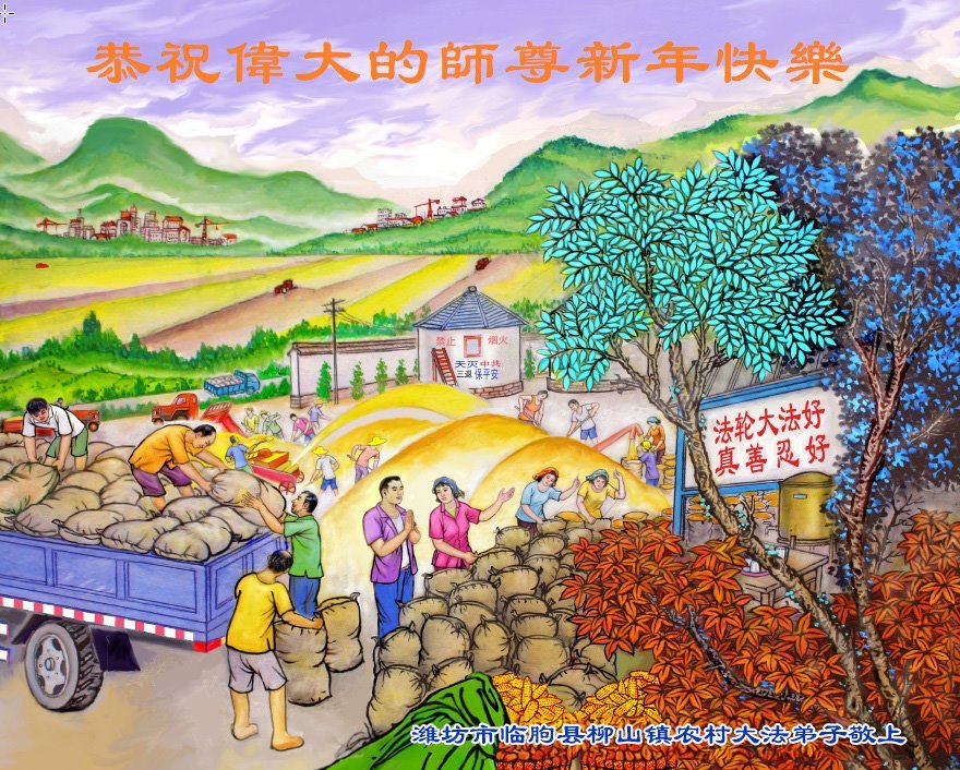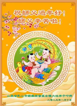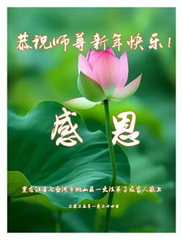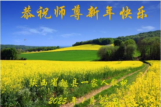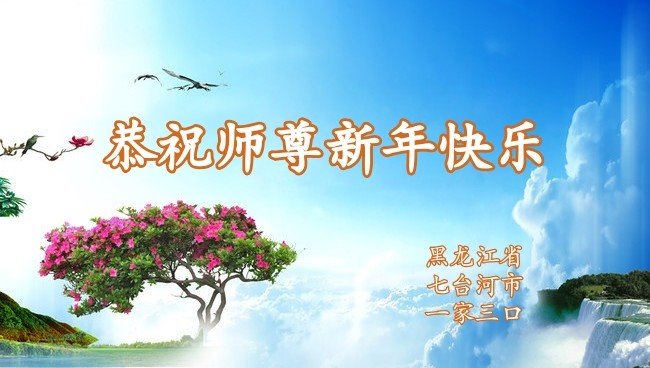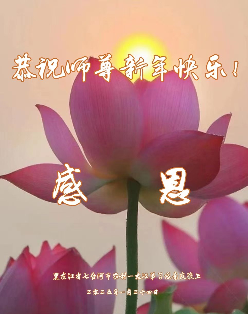 恭祝师父新年快乐!我们是朴实无华的农民,今生今世有幸得到了万古难遇的宇宙大法,随师走上了返本归真的神路,我们感到无比荣耀!我们是世界上最幸福的人,我们怀着万分喜悦的崇敬心情感恩师尊!