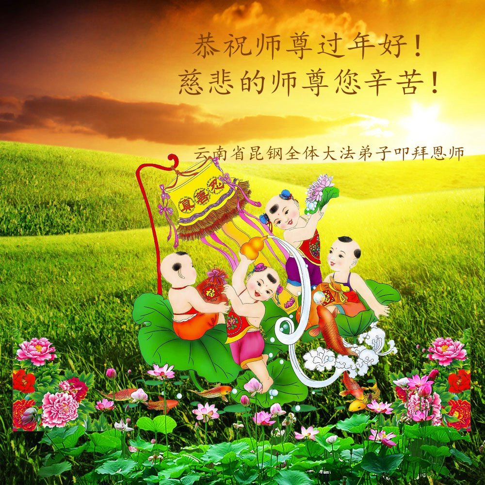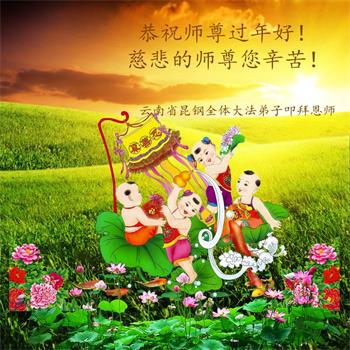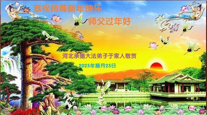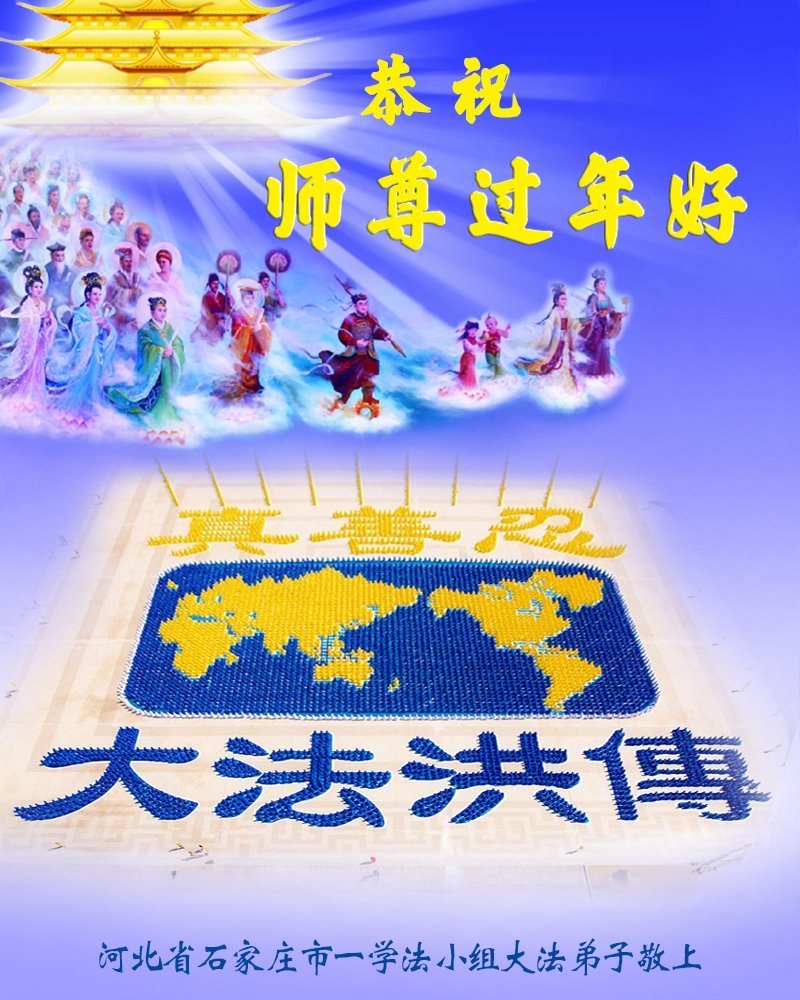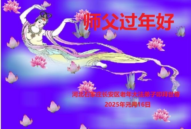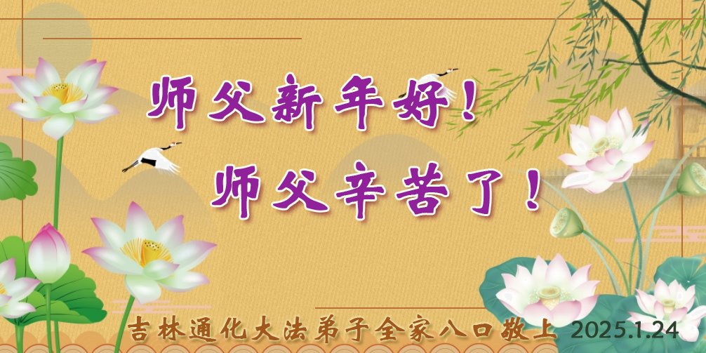 给佛恩浩荡、慈悲伟大的师尊拜年!师父过年好!您用巨大的付出和承受,不要弟子们的任何回报,时时刻刻、分分秒秒看护着我们走过了一年又一年!师父辛苦啦!请师父放心,我们全体大法弟子一定要跟上正法進程,在做好“三件事”的同时发出强大的正念,践行神的誓约!兑现使命!