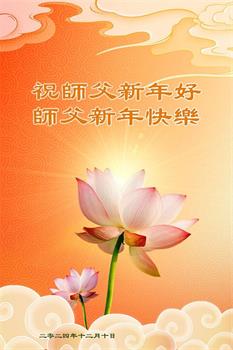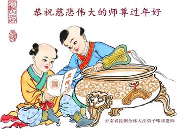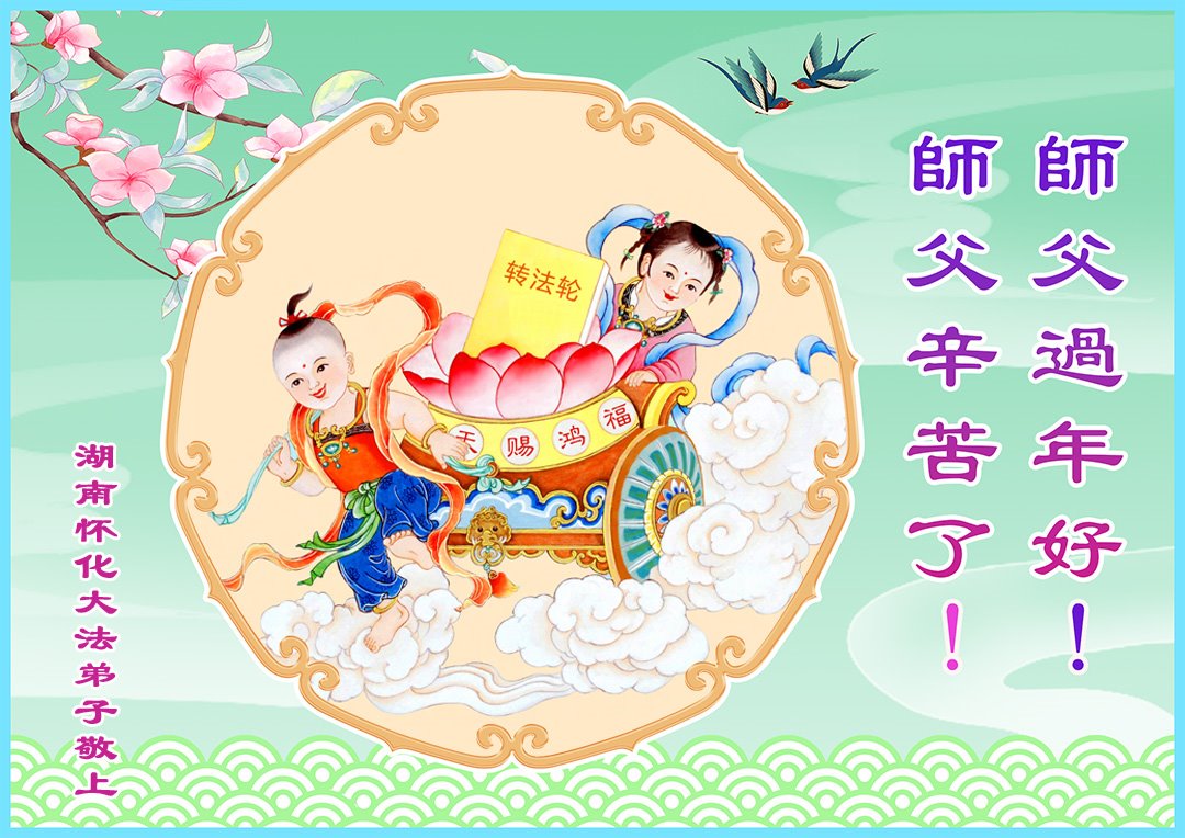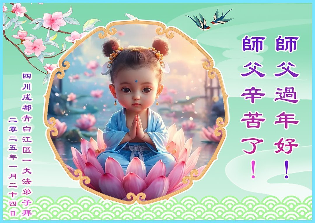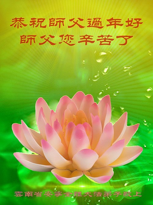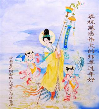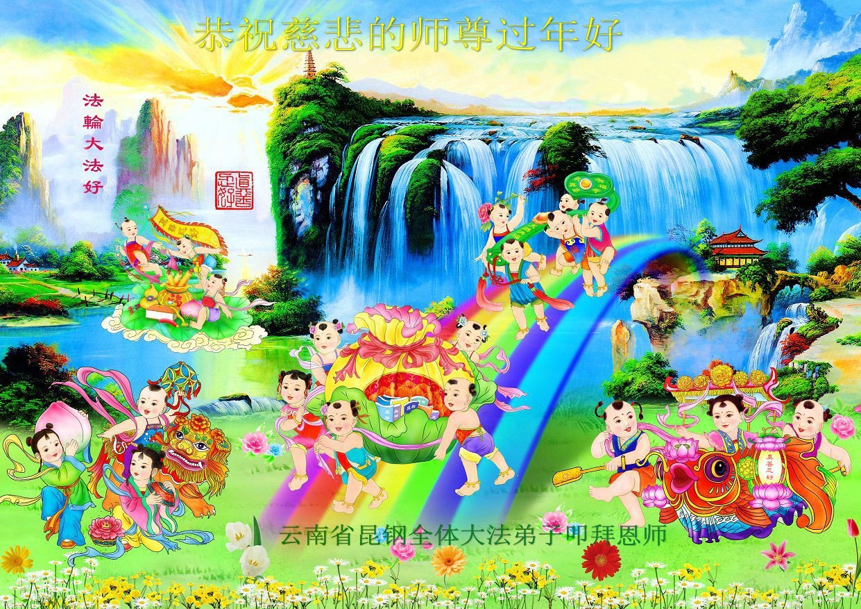 给佛恩浩荡、慈悲伟大的师尊拜年!师父过年好!您用巨大的付出和承受,不要弟子们的任何回报,时时刻刻、分分秒秒看护着我们走过了一年又一年!师父辛苦啦!请师父放心,我们全体大法弟子一定要跟上正法進程,在做好“三件事”的同时发出强大的正念,践行神的誓约!兑现使命!