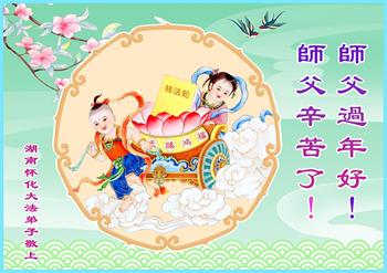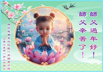 以下是部份中国农村大法弟子给慈悲伟大的师尊发来的贺词贺卡: