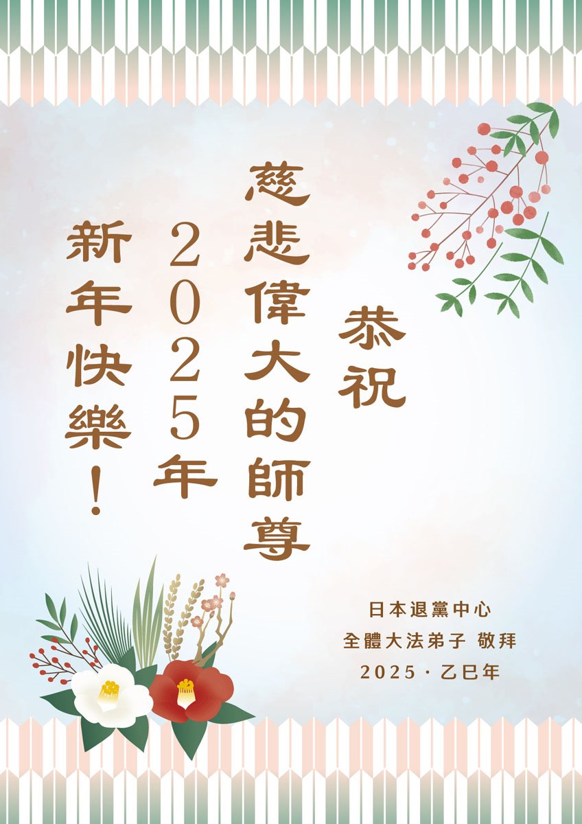 <英文版: https://en.d2s3ombhnov3zf.cloudfront.net/html/articles/2025/2/1/224941.html>大陆同修祝明慧编辑部的同修和所有做项目的海外同修新年快乐