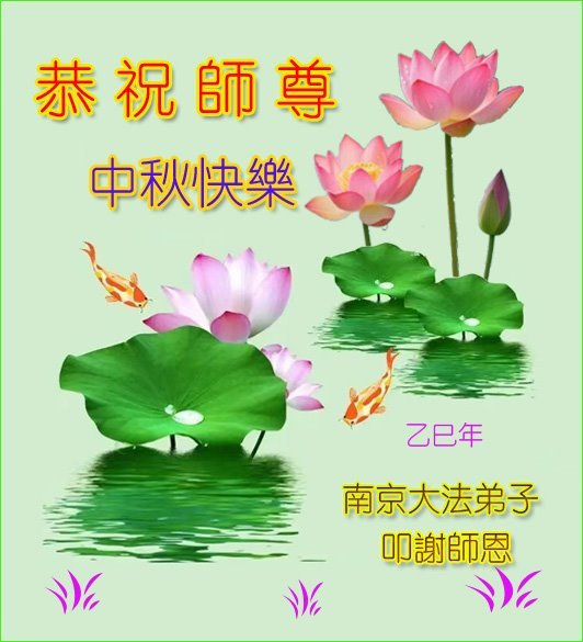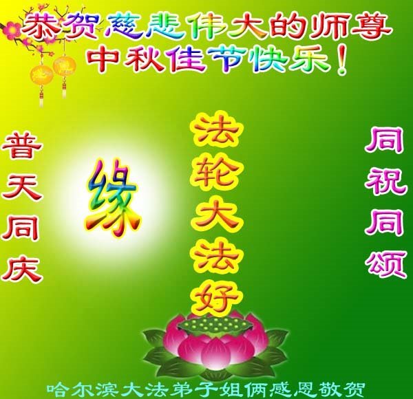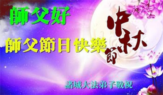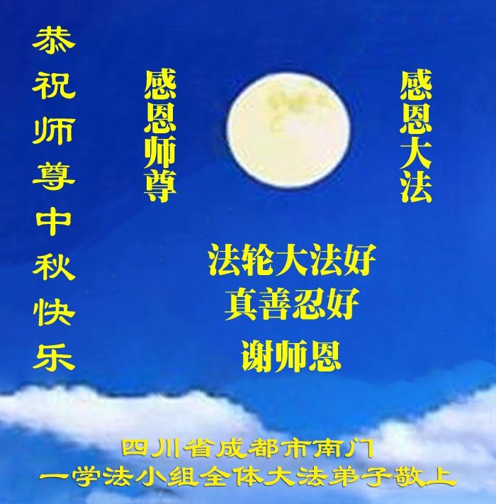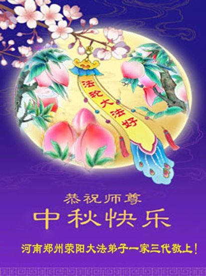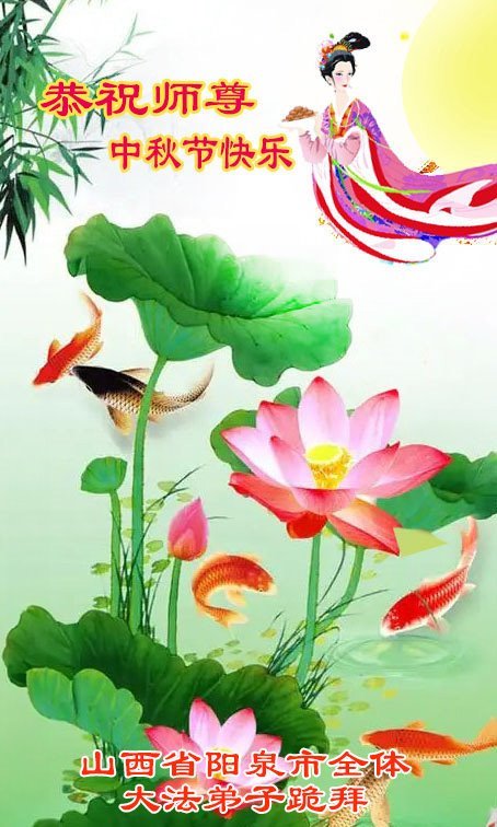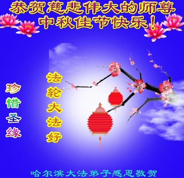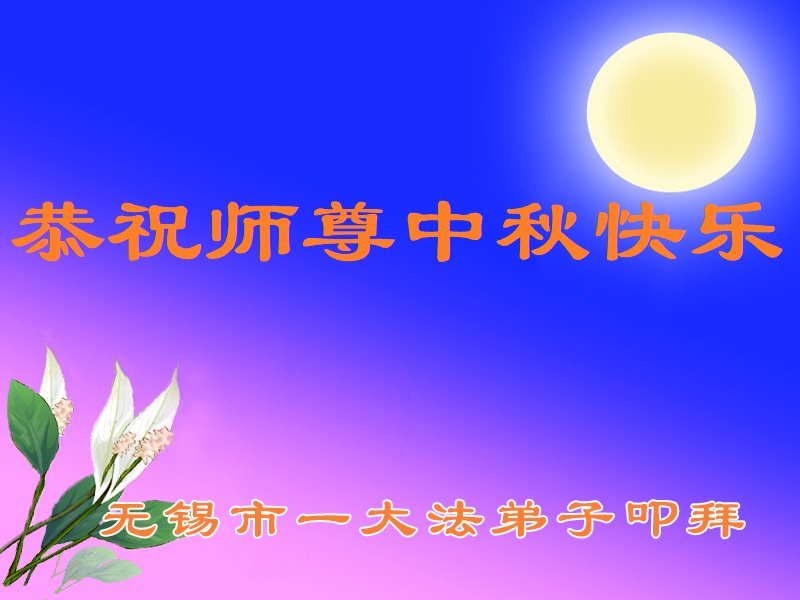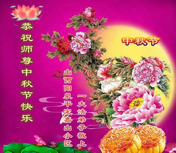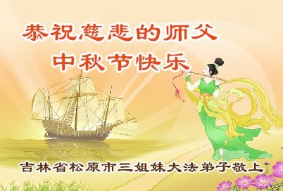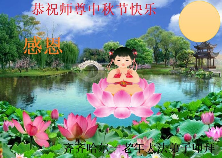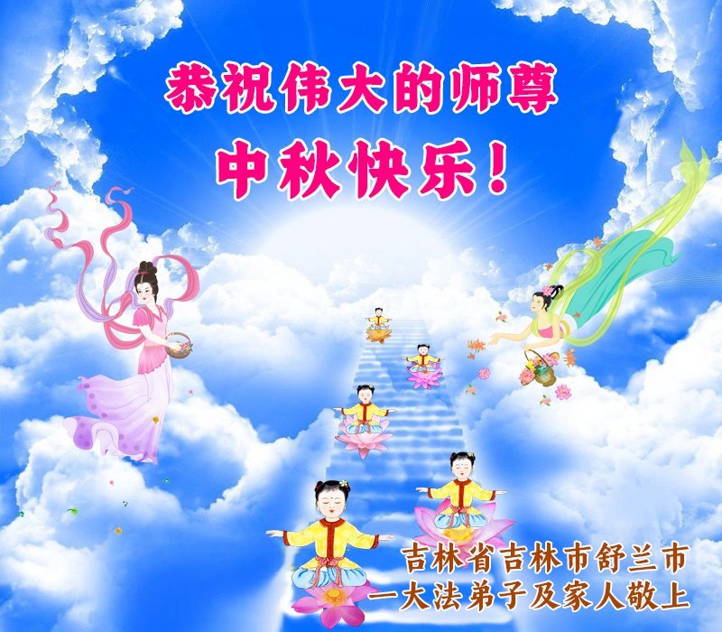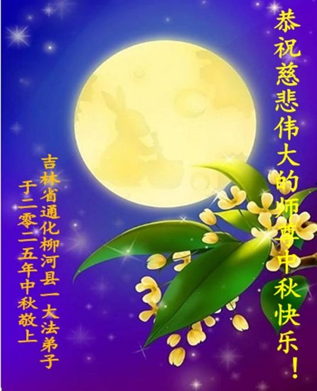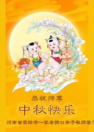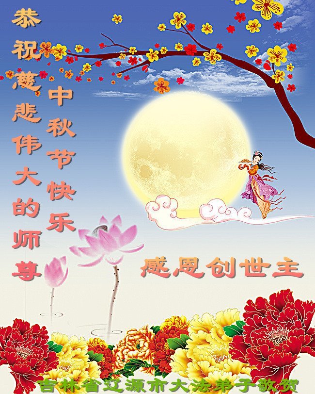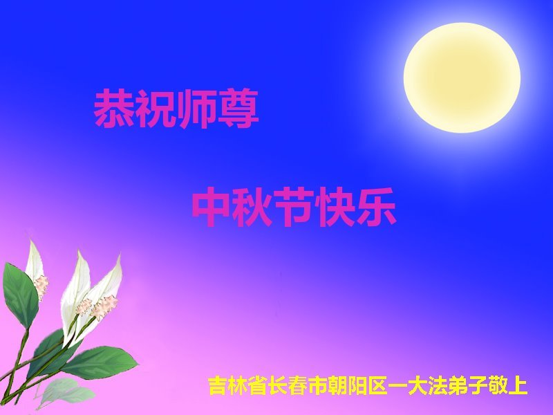 敬祝地球上最最尊敬的大法师父中秋节快乐!盼望大法师父早日回中国和您的弟子们团聚,愿您的弟子们早日脱离苦海!也祝福大师的弟子们中秋快乐!